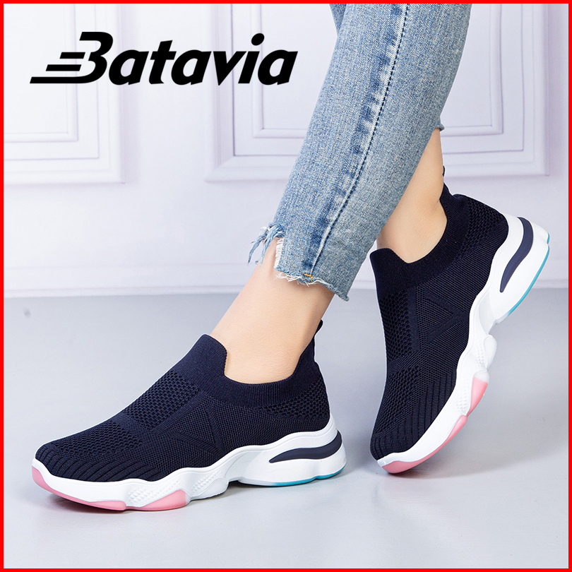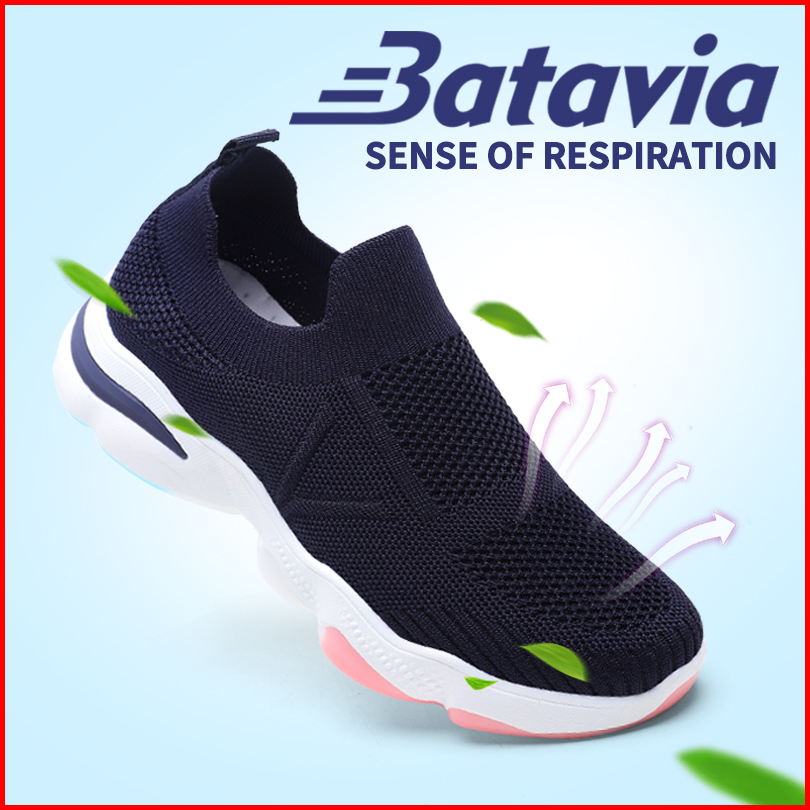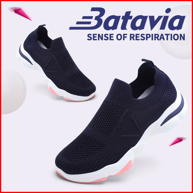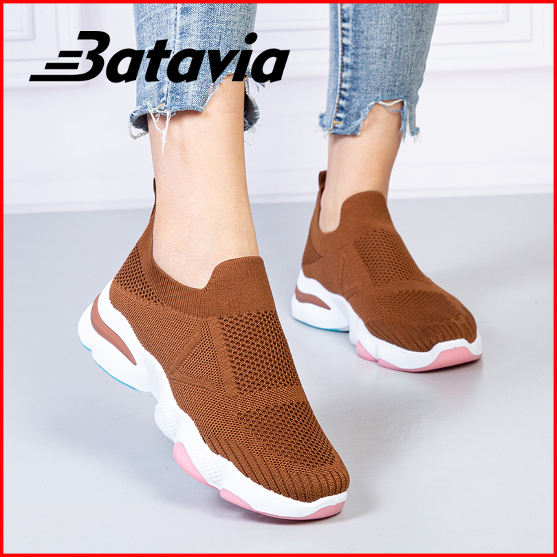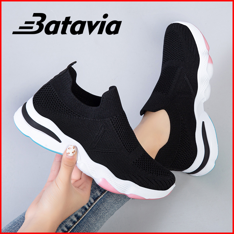 Batavia Grosir Sepatu Wanita Rajut Sepatu Tanpa Tali Hitam Sepatu Wanita Sport Women Sneakers A111