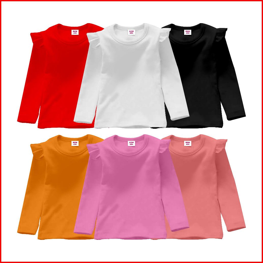 Kaos Polos Anak Perempuan Lengan Panjang Model Ruffle