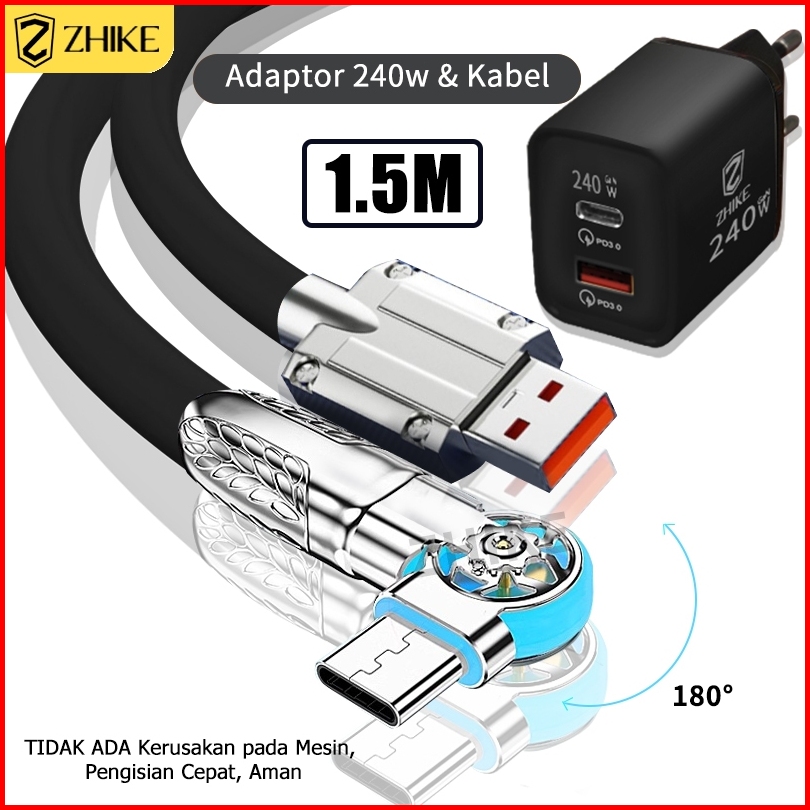 Zhike Kabel Data Fast Charging Kabel Casan Micro Usb Untuk Lightning Type C Pengisian Cepat Dengan Adapter 240w 1.5m 180