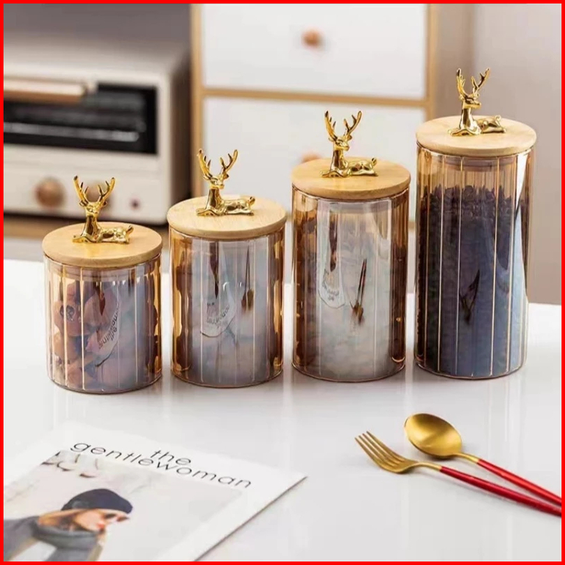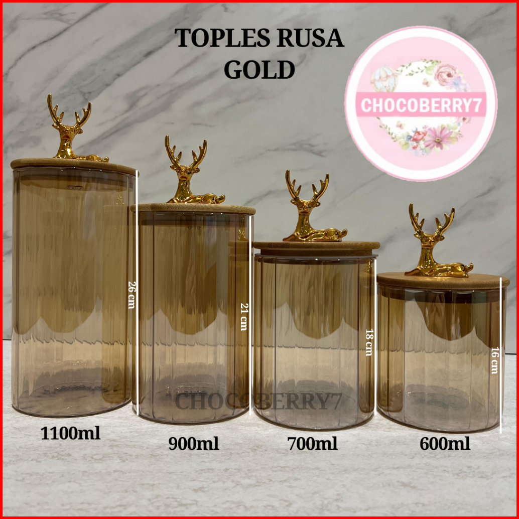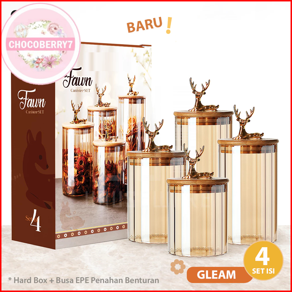 Chocoberry7 Toples Kaca Set 4 Pcs Toples Rusa Premium Toples Tutup Bambu Kedap Udara Toples Kue Lebaran Hampers Dengan B
