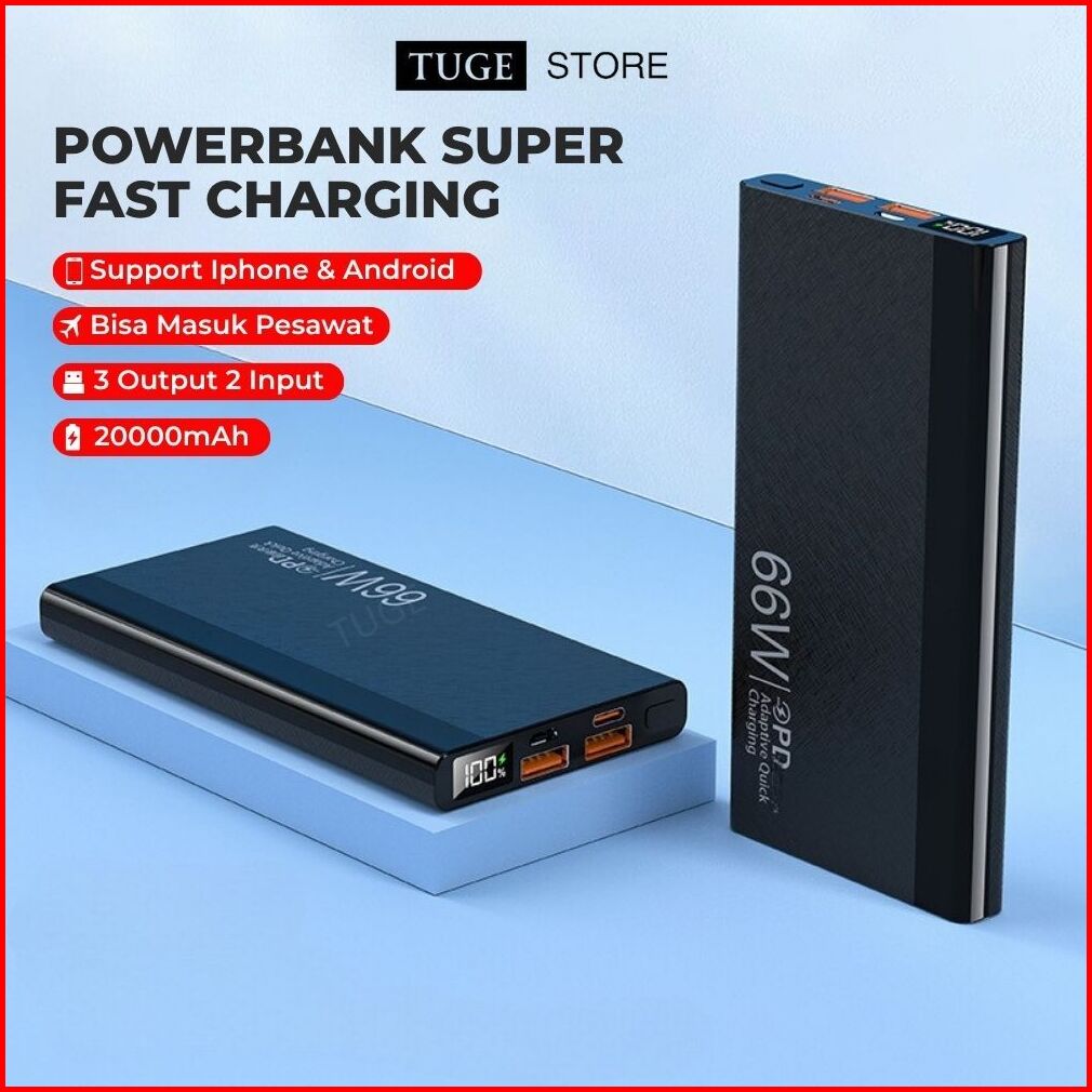 Tuge 66w Powerbank Fast Charging Power Bank 20000mah Led Display 2 Output Port Usb Type C For Iphone Pengisian Cepat Rob