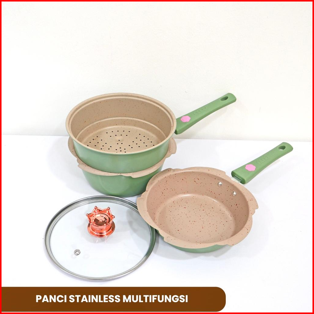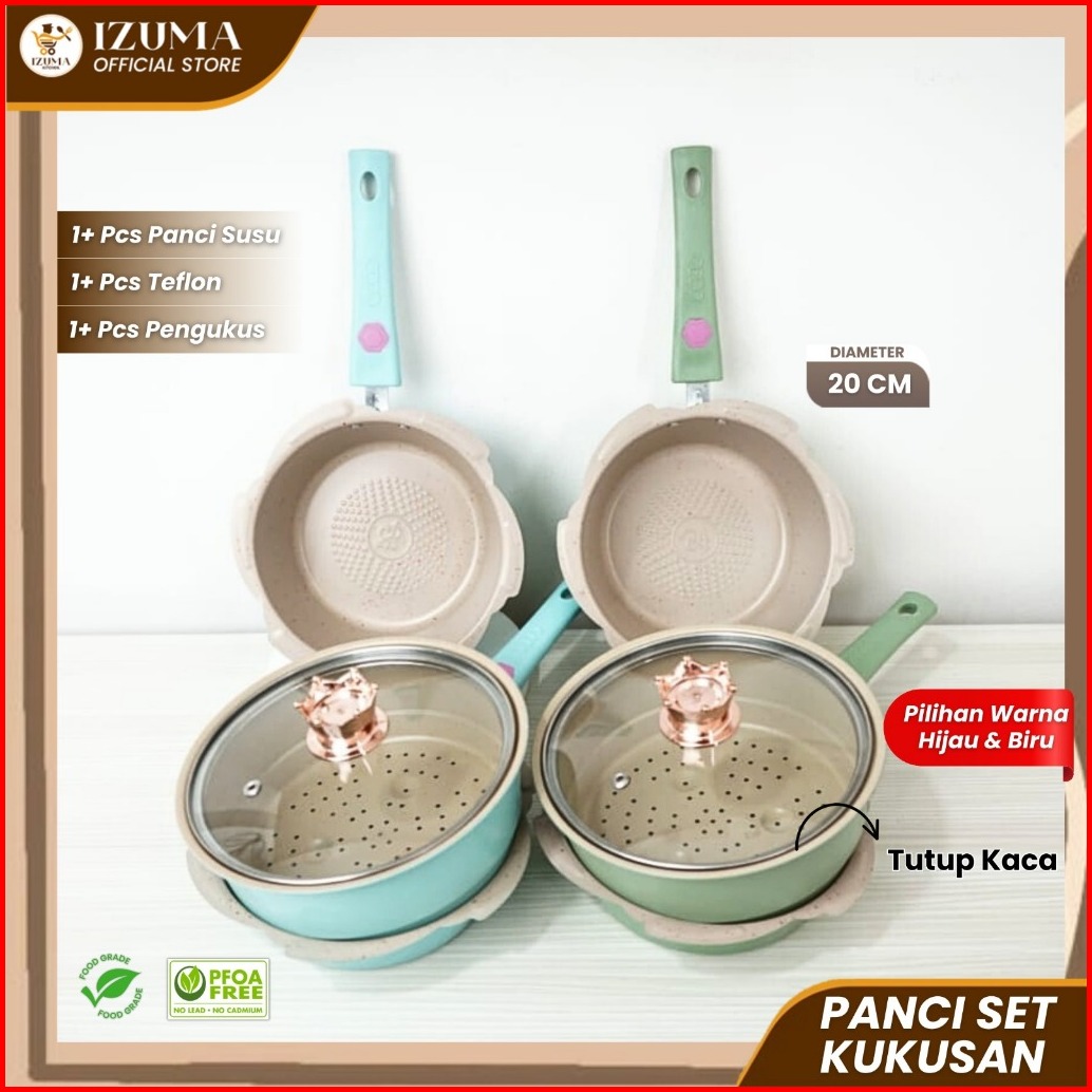 Izuma Panci Mpasi Set Bayi 4 In 1 Kukusan Granit Anti Lengket Wajan Keramik Food Grade Aman Mpasi
