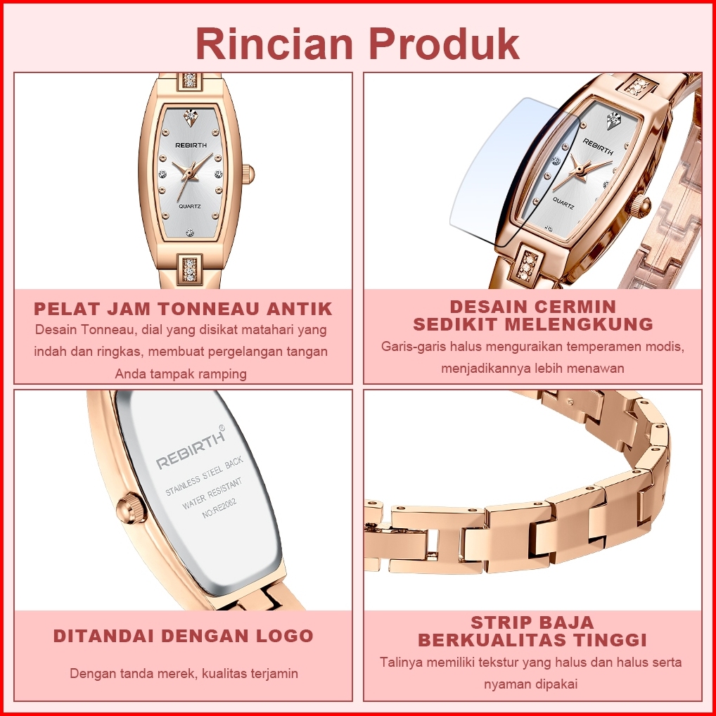 Rebirth Jam Tangan Wanita Anti Air Original Korea Elegan Tali Stainless Steel Jam Tangan Cewek Kecil