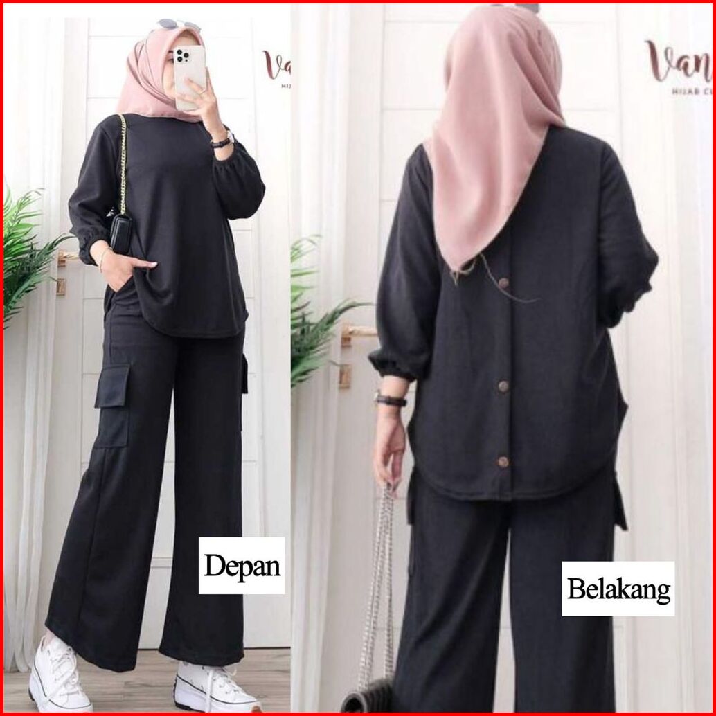 Anesti Set Kancing Belakang Celana Cargo Crinkle Airflow Ld 110 Setelan Polos Anesti One Set Divya Setelan Celana Cargo