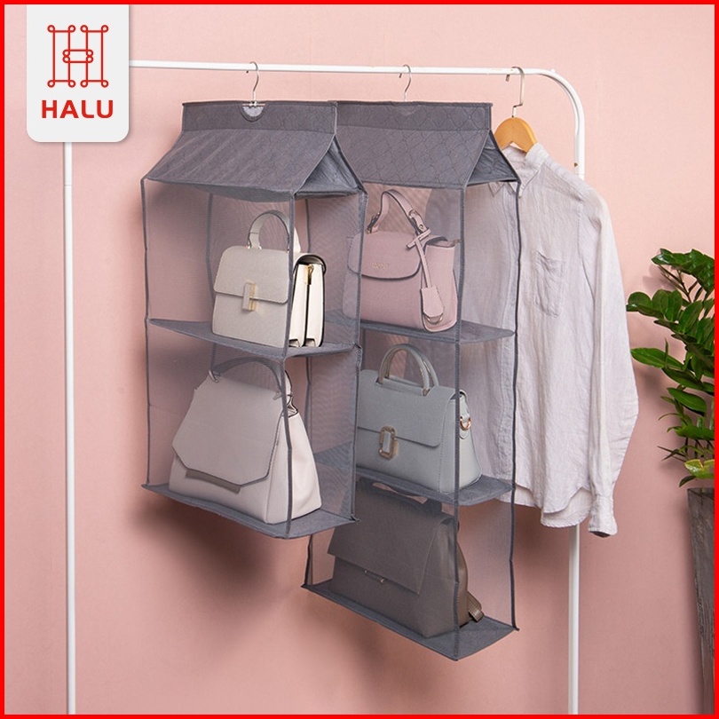 Halu Rak Tas Gantung Bag Organizer Rak Bag Kotak Tempat Penyimpanan Tas Bag Storage Anti Debu Sebaguna Hdk306