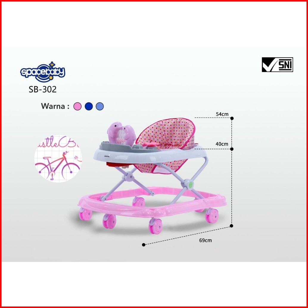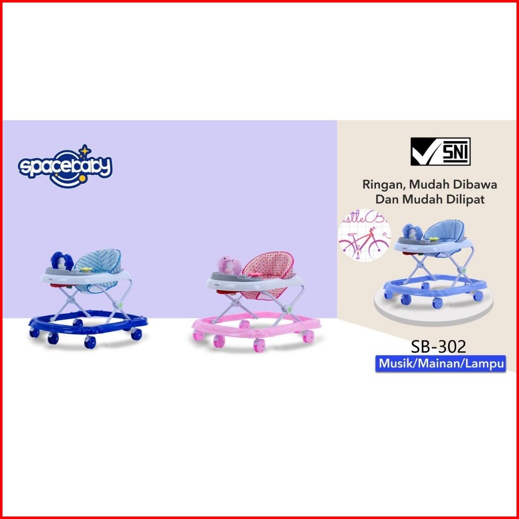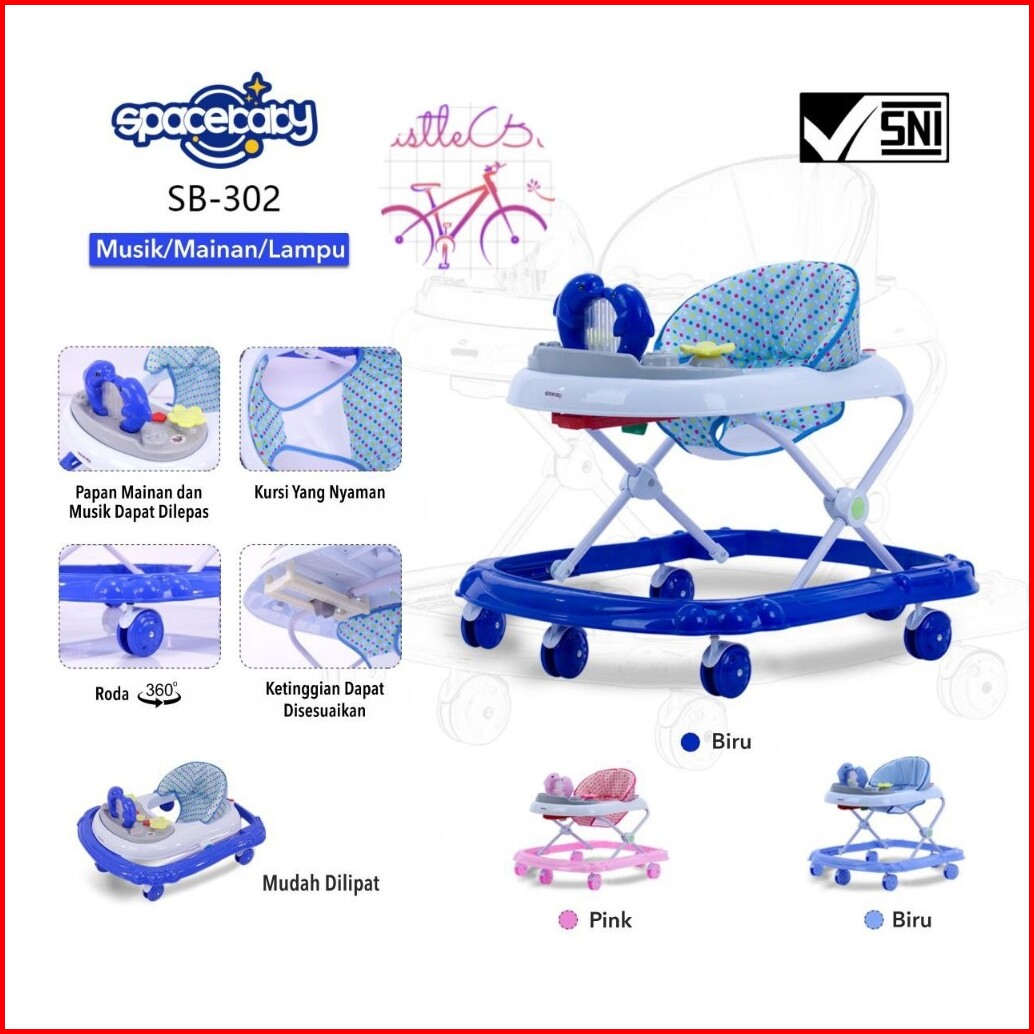 Spacebaby Sb302 Baby Walker Dolphin Ic Music Mainan Bisa Dilepas Size Besar 6-18 Bulan