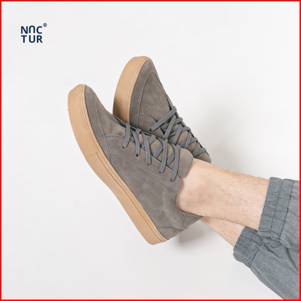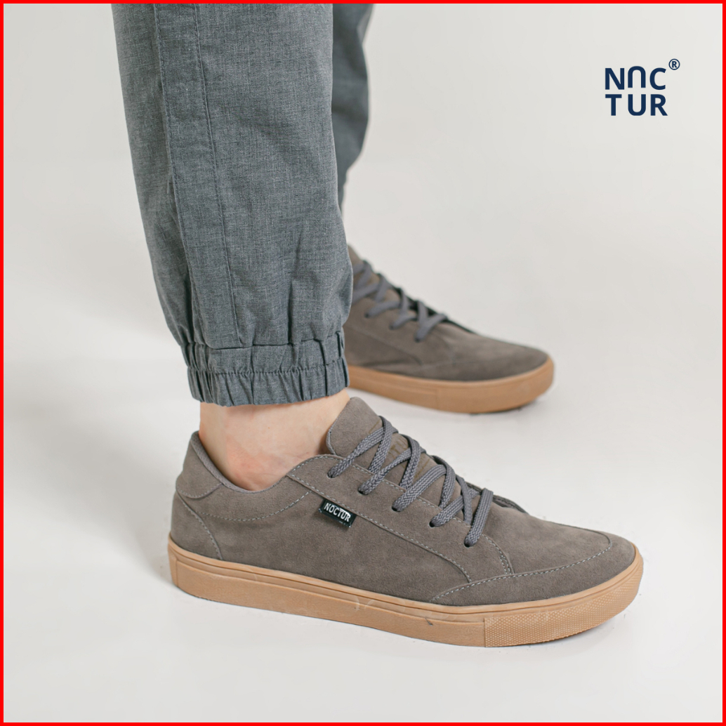 Noctur - Sepatu Sneakers Pria Casual Original Kerja Abu Bahan Kulit Suede Size 38 - 44 N-201