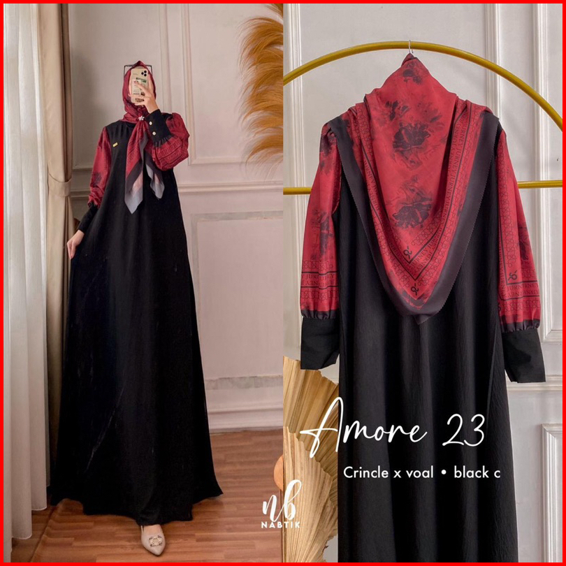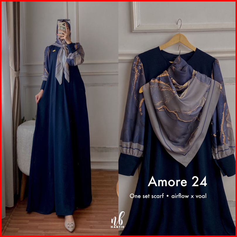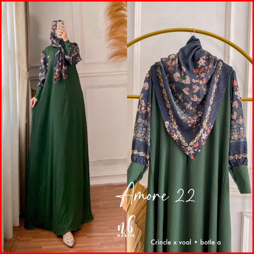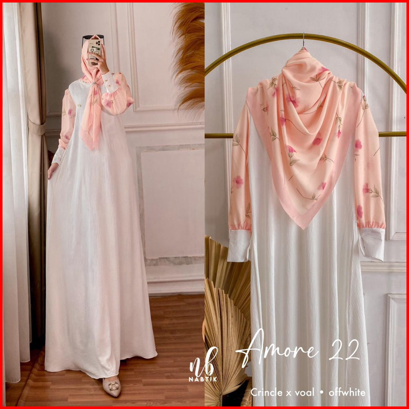 Dress Gamis Set Hijab Terbaru Amore 3 Syari Cey Airlflow Adem Original By Nabtik
