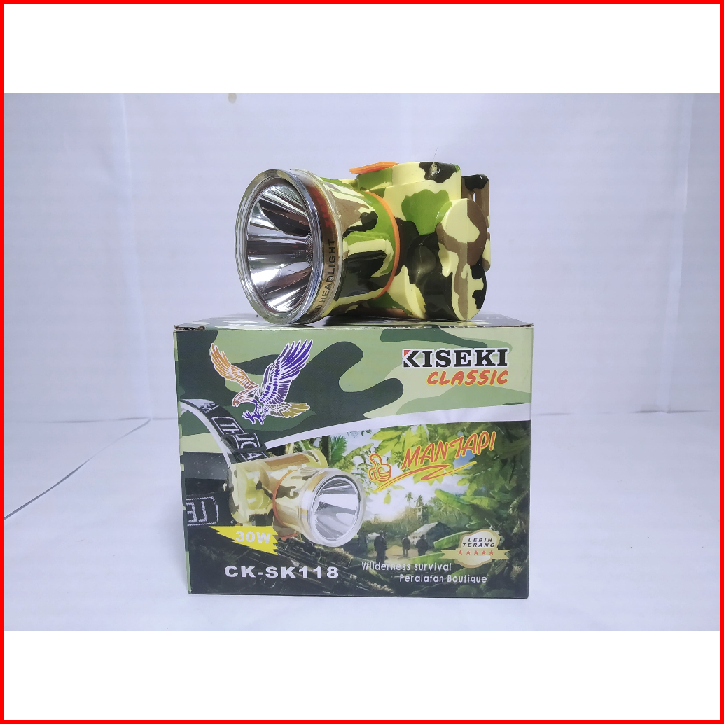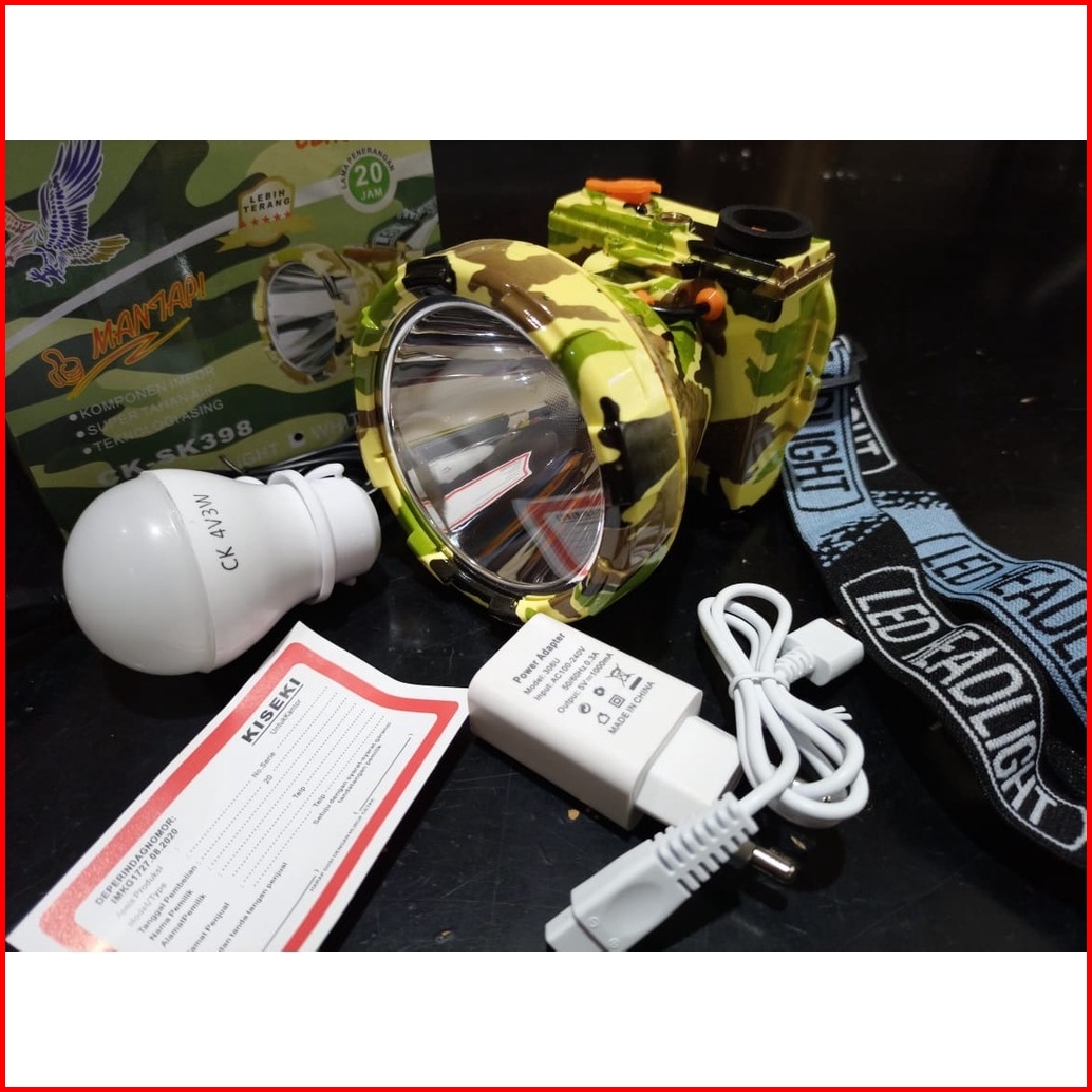 Senter Kepala 150watt Anti Air Kiseki Ck-sk398 Best Seller Body Loreng Premium Pemakaian Hingga 20 Jam Senter Kepala Kis