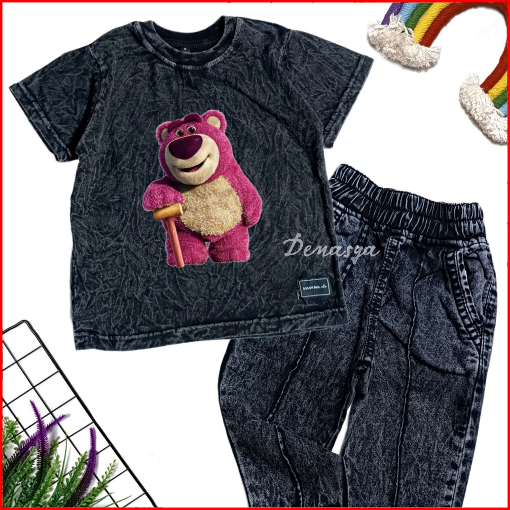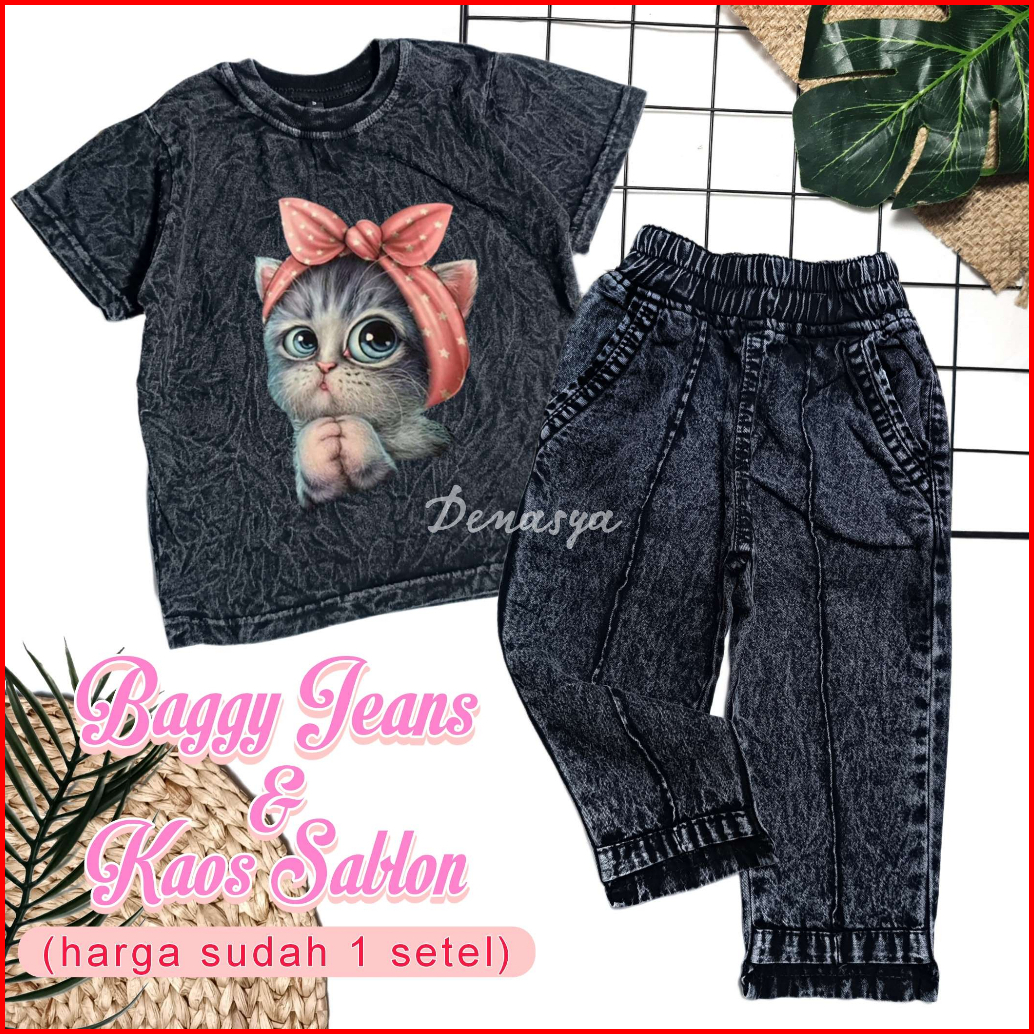 Setelan Anak Perempuan Setelan Baggypants Jeans Anak Kaos Snowblack Sablon Anak 1-10 Tahun