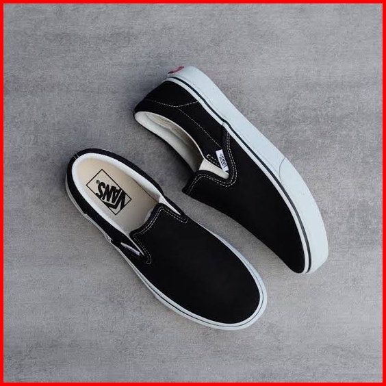 Terlaris Vans Slip On Full Black Sneakers Pria Wanita