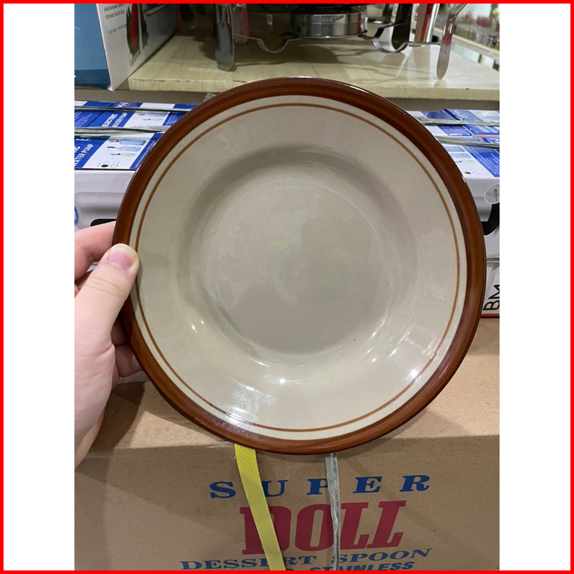 Isi 6 Biji Piring Makan Keramik Coklat Lis Ukuran 8 20 Cm Bubble Wrap