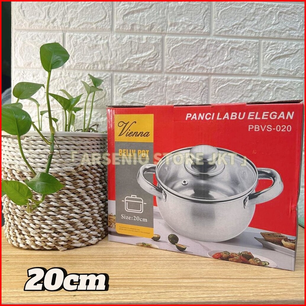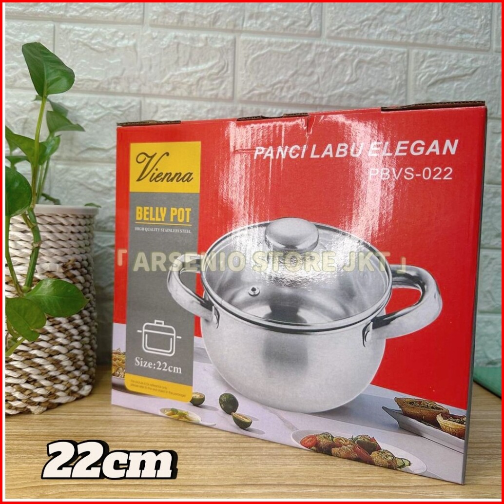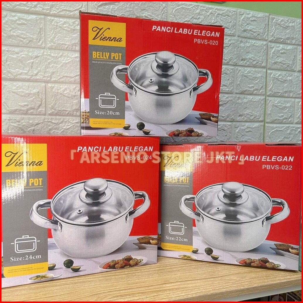 Panci Labu Soup Pot Satuan Belly Pot Ukuran 20 22 Dan 24cm Tutup Kaca High Quality Steinless Steel