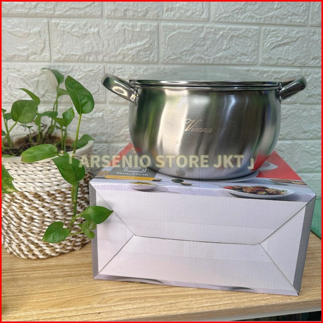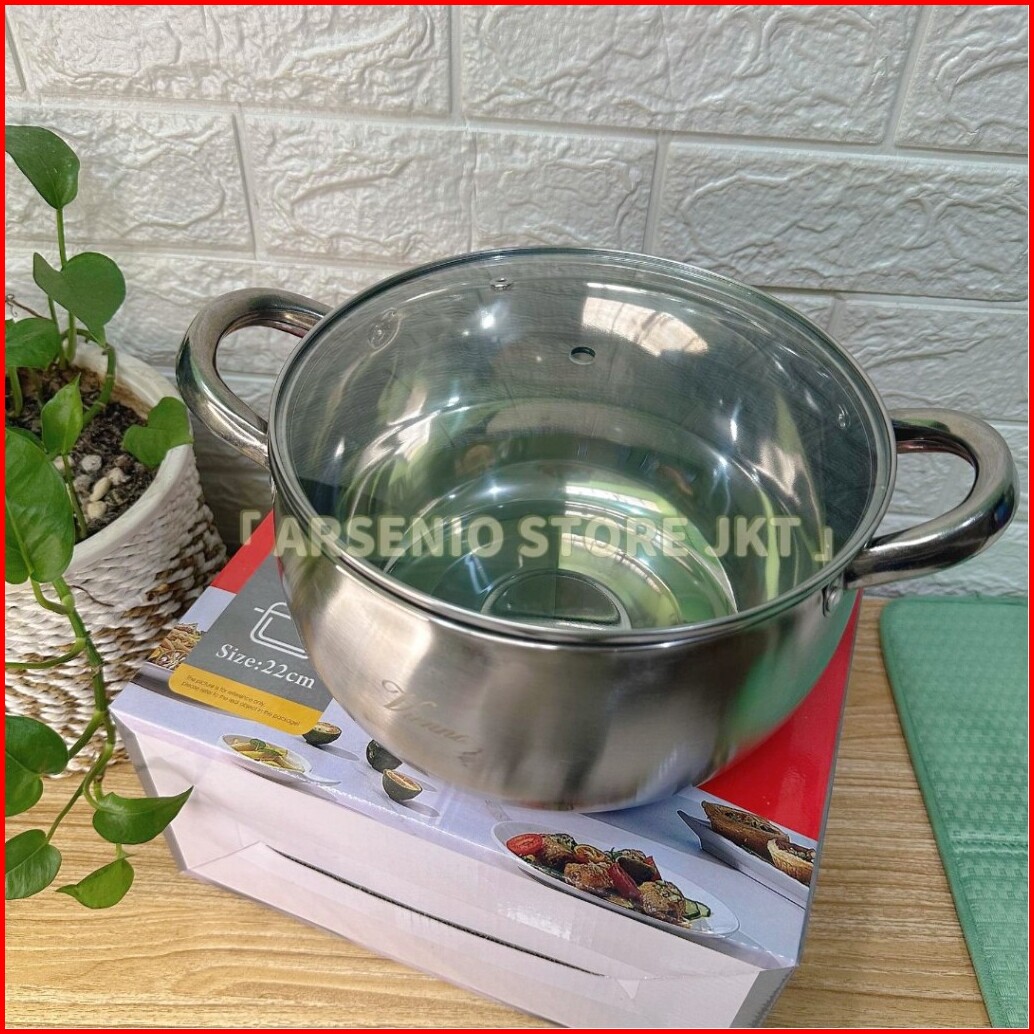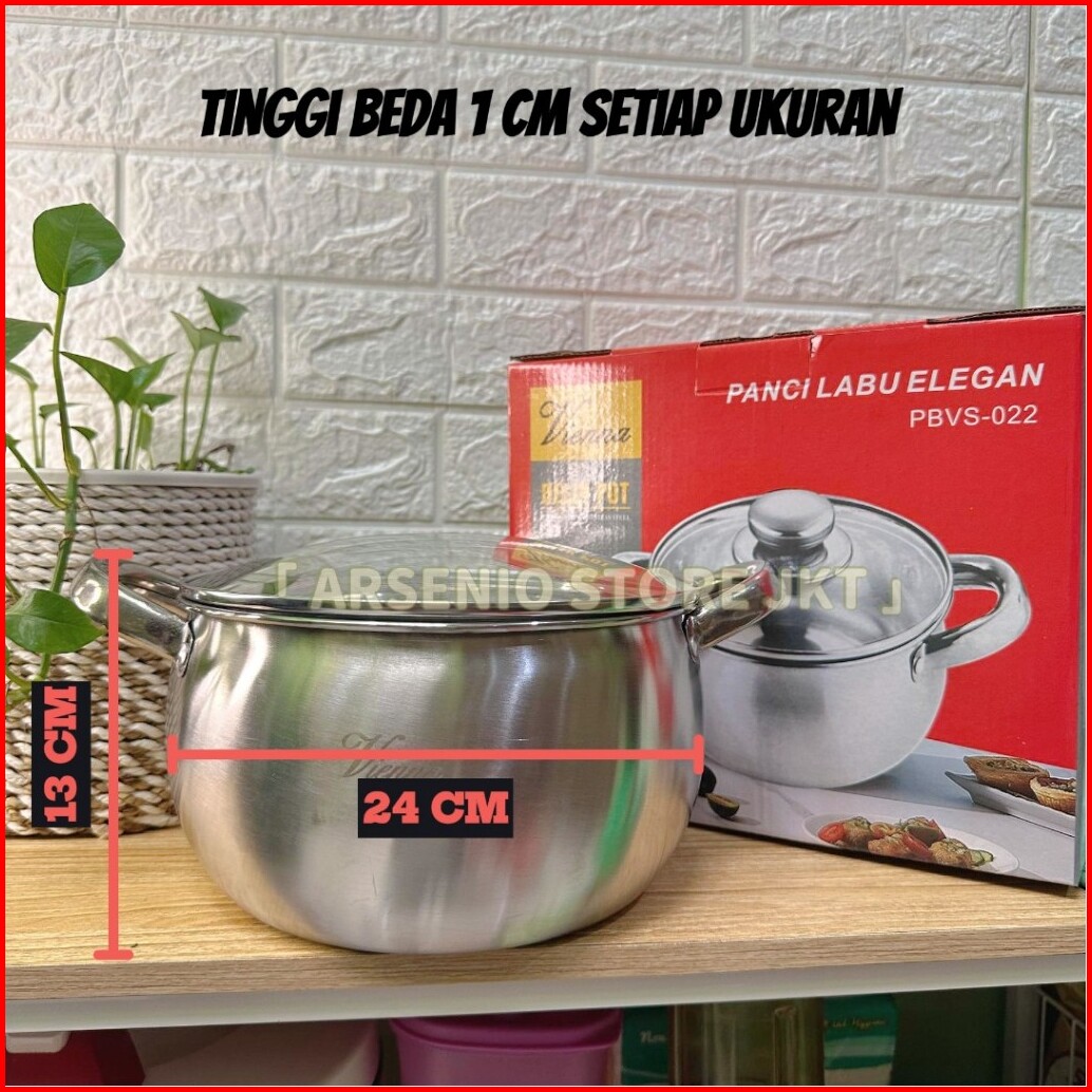 Panci Labu Soup Pot Satuan Belly Pot Ukuran 20 22 Dan 24cm Tutup Kaca High Quality Steinless Steel