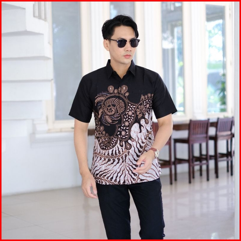 Motif Rangkong Hitam Pendek Kemeja Batik Pria Slimfit Lengan Pendek Baju Batik Pria Hem Batik Pria Jumbo