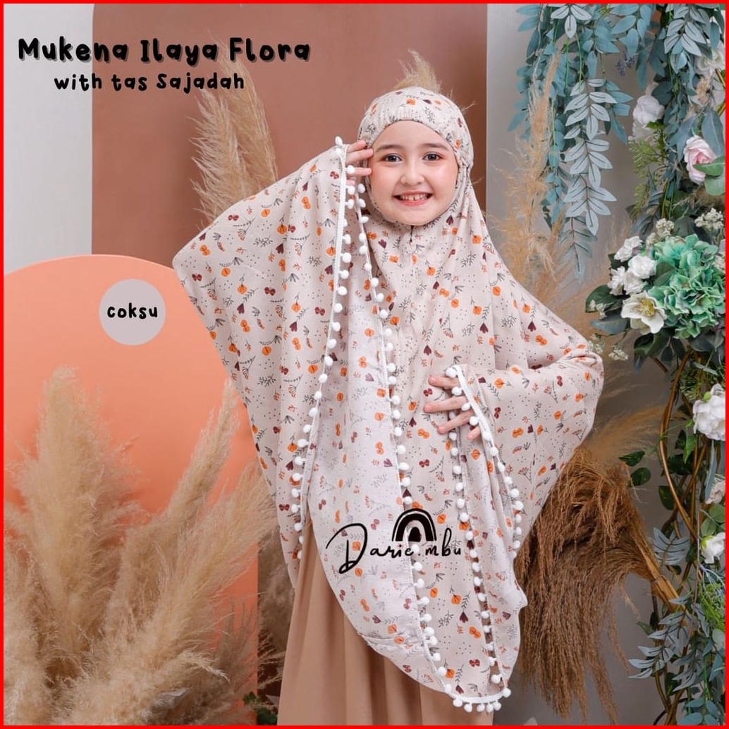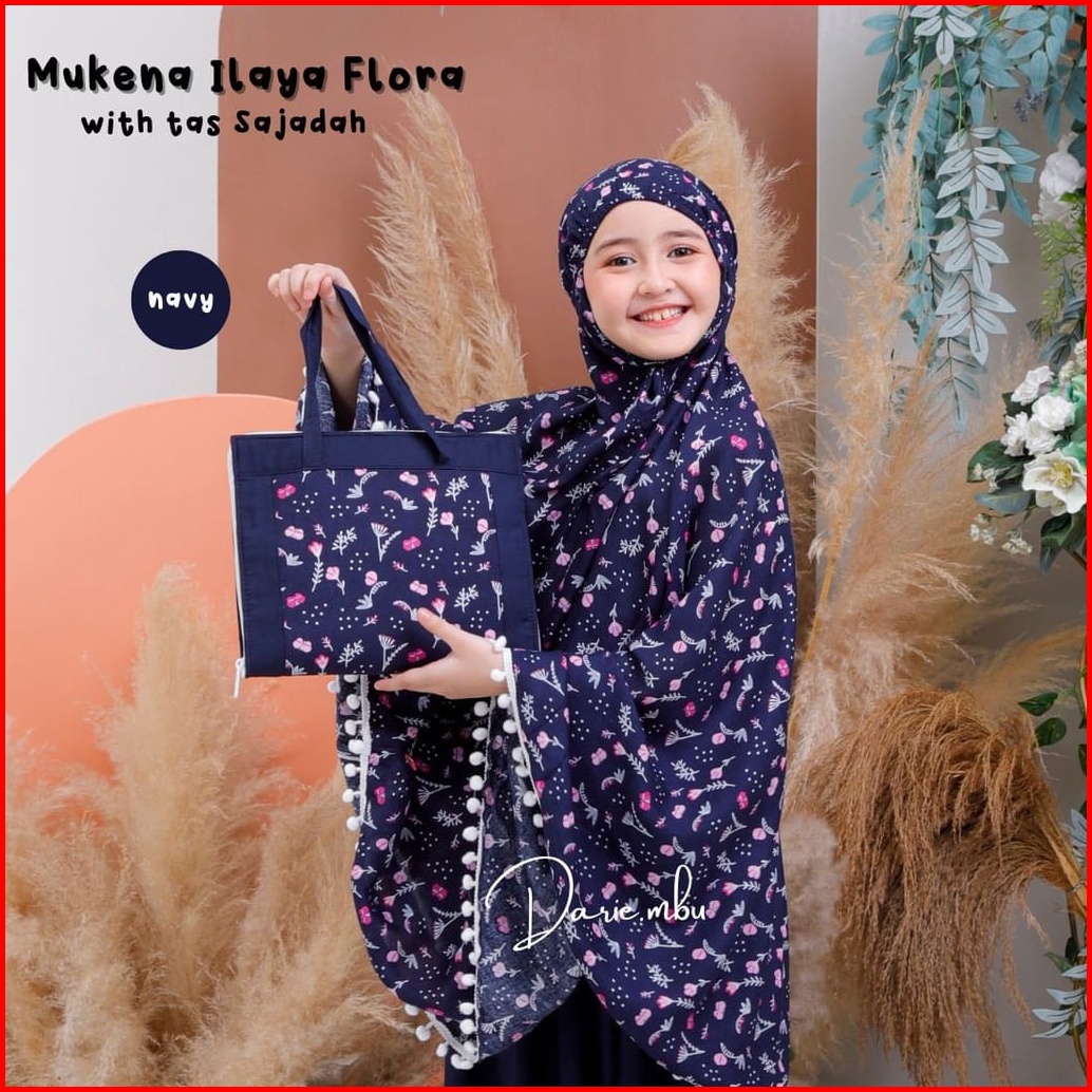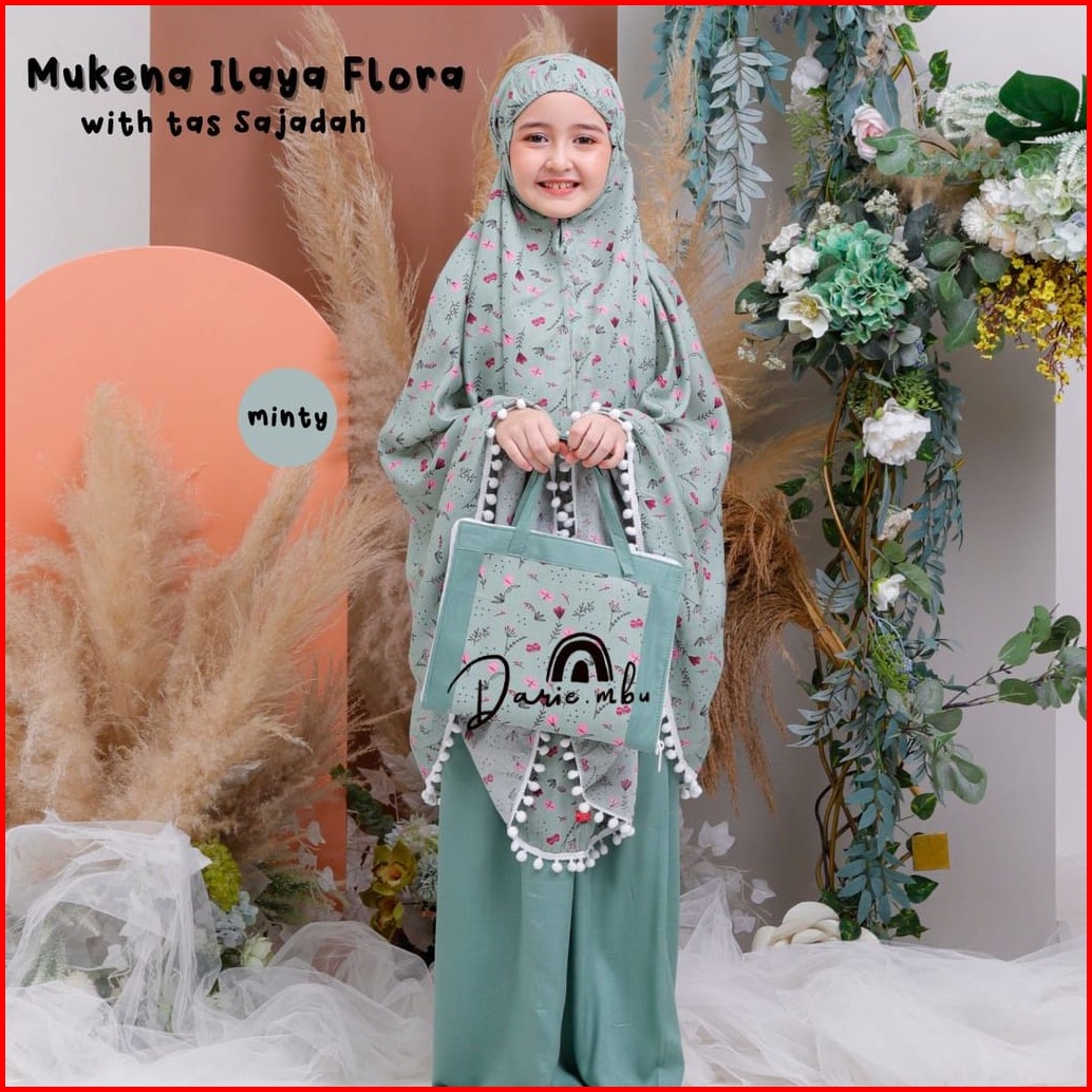 Mukena Anak Tanggung Ilaya Flora Rayon Tas Jadi Sajadah Renda Pom Pom Mukena Anak Perempuan
