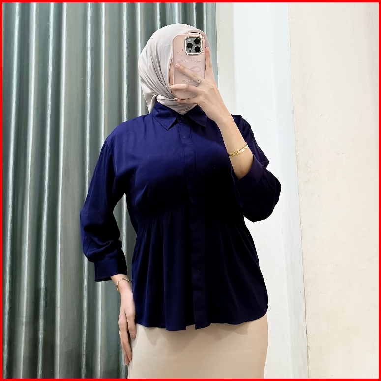 Fa.mistar Kemeja Wanita Alya Shirt Model Kerut Bagian Perut Rayon Twill
