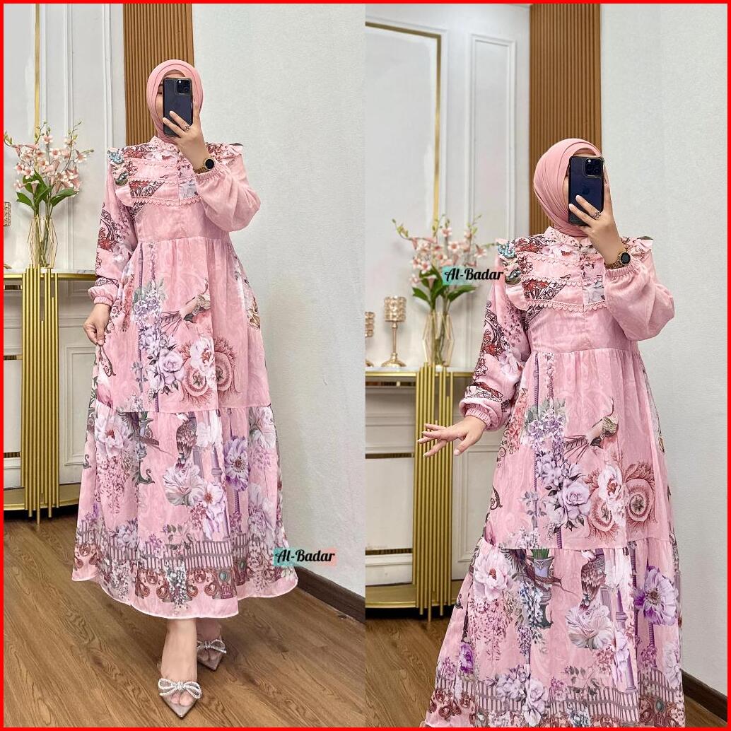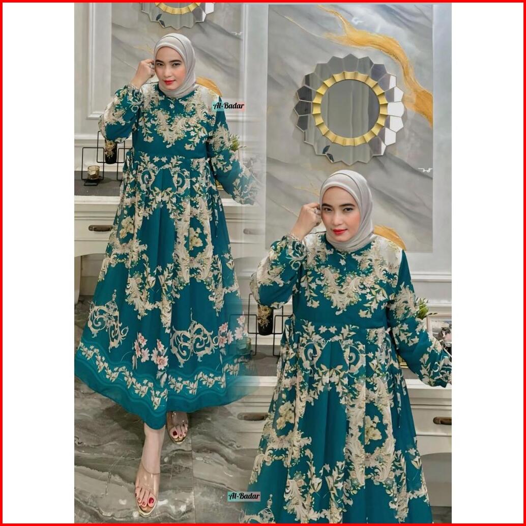 Midi Dress Ceruty Babydoll Motif Terbaru Dengan Variasi Tali Pinggang Serut Mididress Terbaru Tunik Ceruty Midi Dress Or