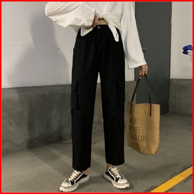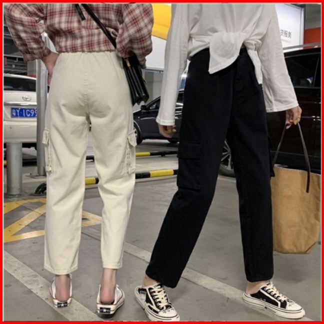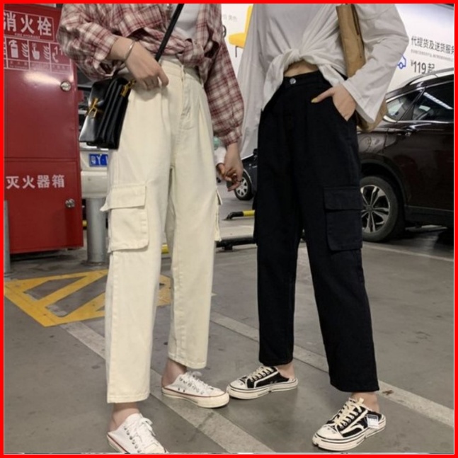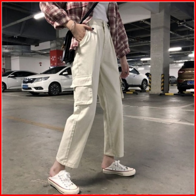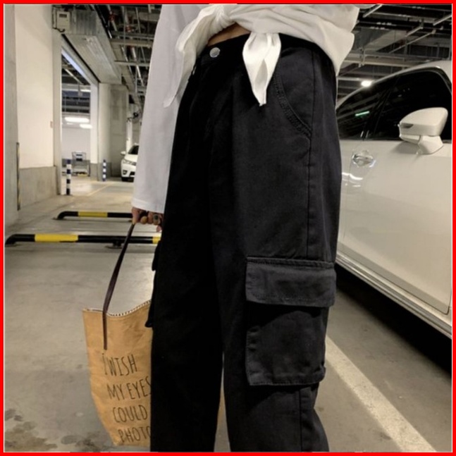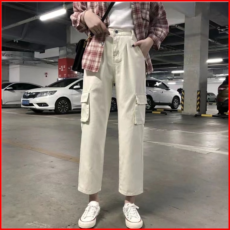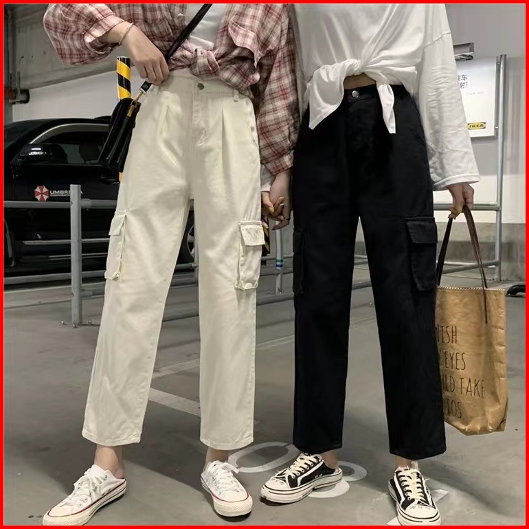 Highwaist Cargo Jeans Krem Hitam Cargo Jeans Wanita Loose Cargo Jeans Premium Import