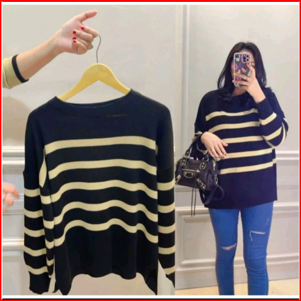Maudy Sweater Rajut Garis Knit Korean Style Premium Size Jumbo Bb 40-80kg
