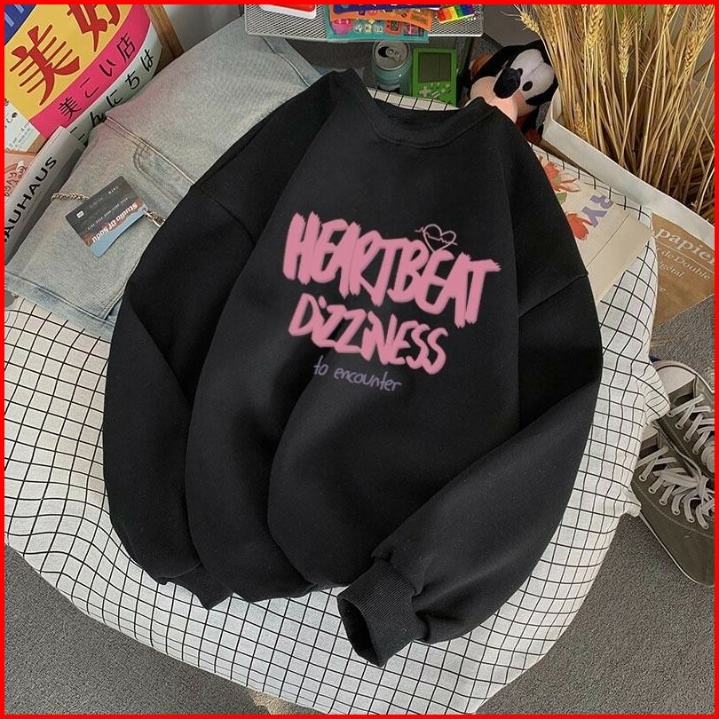 Jessica Korean Sweater Oversize Lengan Panjang Heartbeat Dizznes Crewneck Distro Bahan Cotton 100