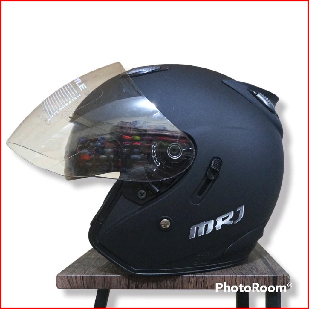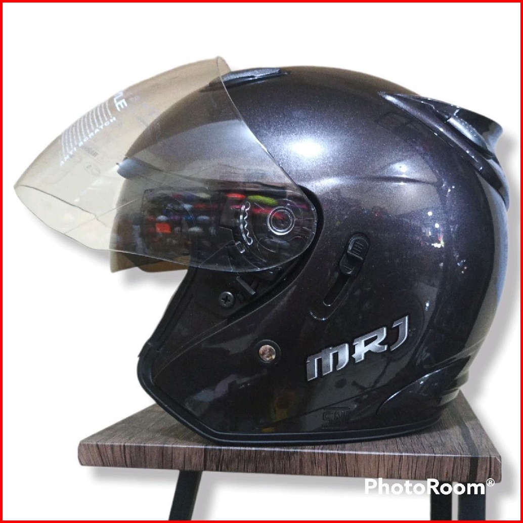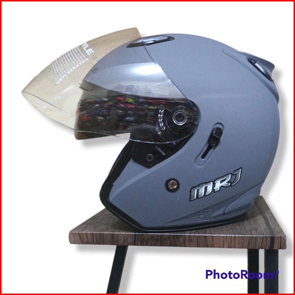 Helm Mrj Centro Dobel Visor 2 Kaca Gorila Grey Glos