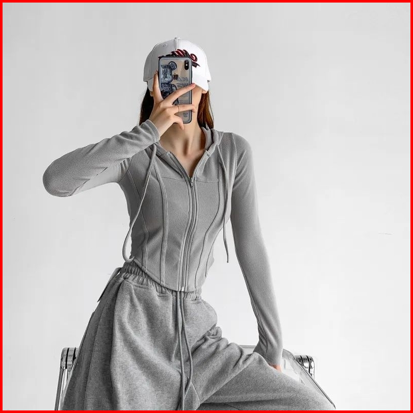 Grania Premium High Quality Jacket Zipper Hoodie Crop Top Wanita Kekinian Fashion Outfit Ootd Korean Style Model Terbaru