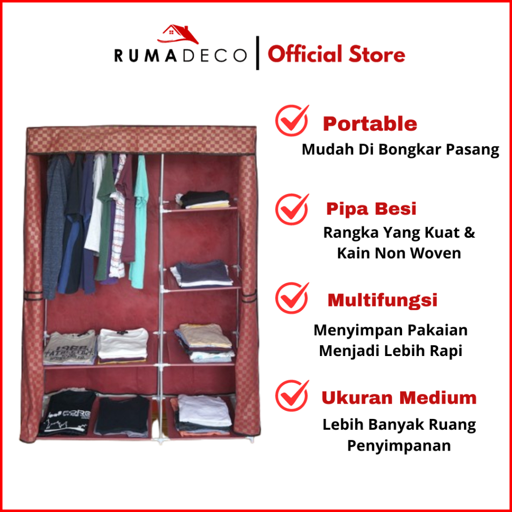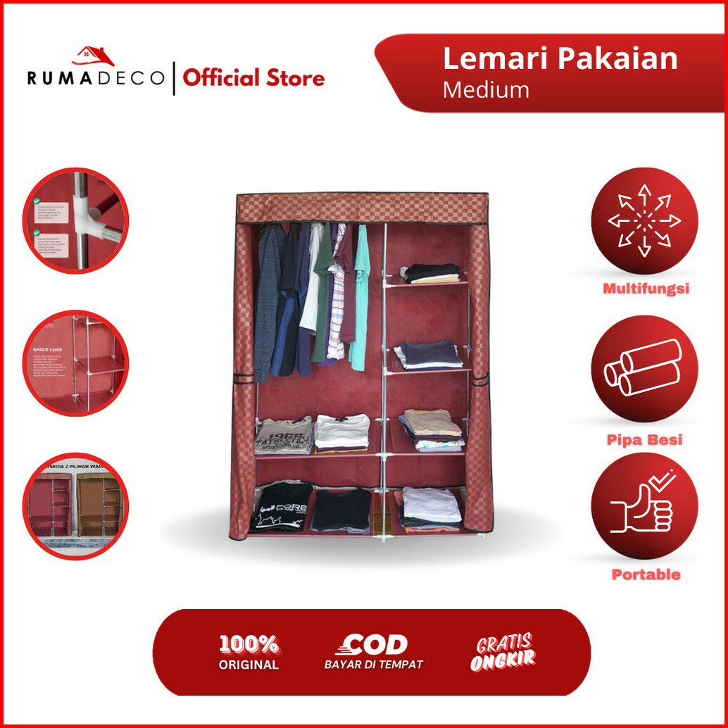 Rumadeco Lemari Pakaian Multifungsi Lemari Baju Bongkar Pasang Serbaguna Medium
