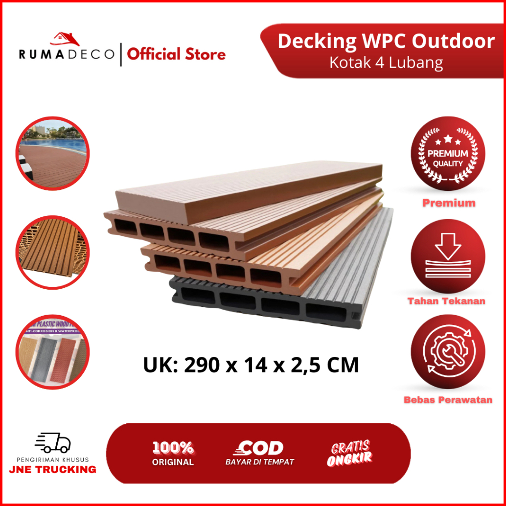 Rumadeco Decking Wpc Outdoor Lantai Kayu Kolam Renang Taman Teras Gazebo Decking Flooring Motif Kayu Outdoor Kotak