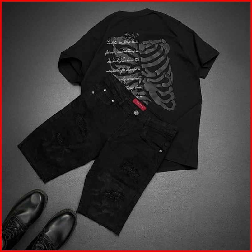 Original 100 Rucas Year Of Snake Python Jeans - Skeleton Tee Initial Black On Black Tee Rucas Artist Edition Sadikin Par