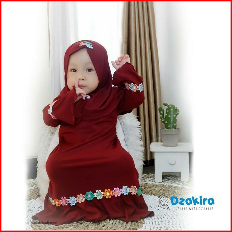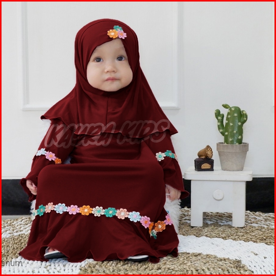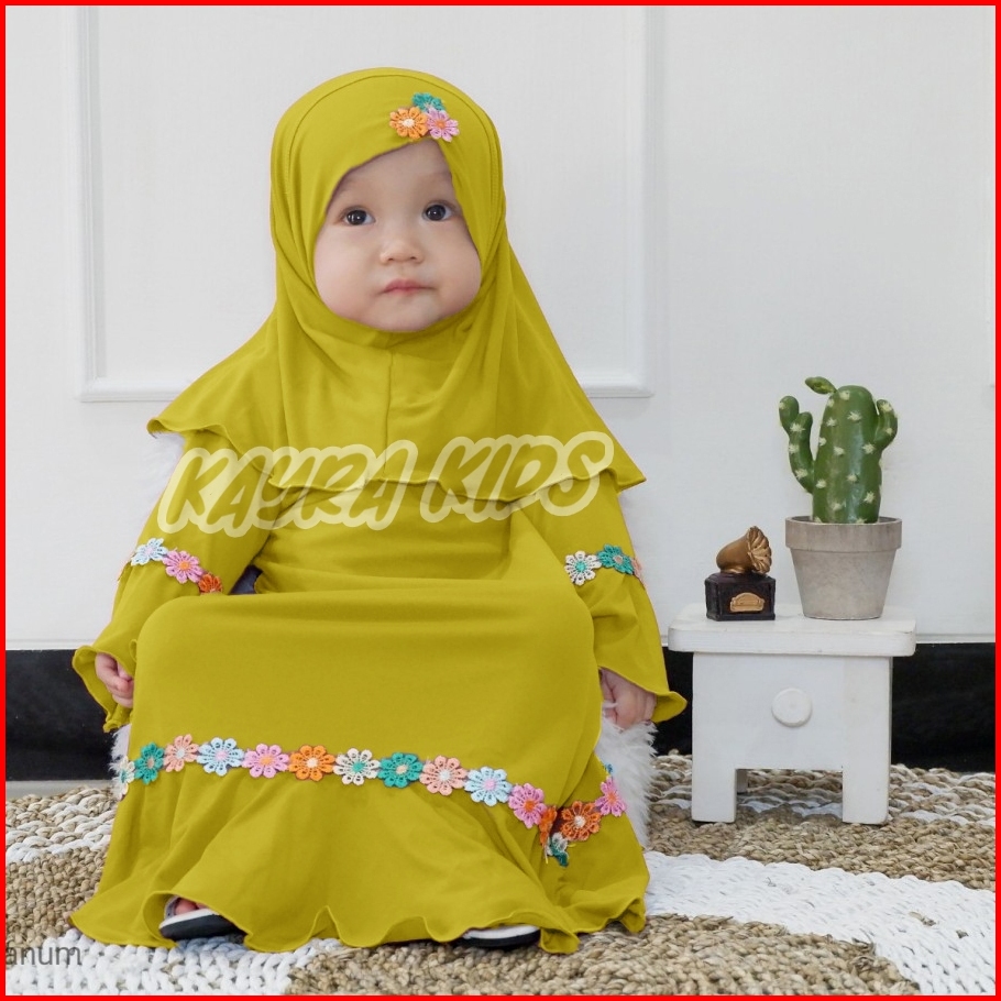 Gamis Bayi Perempuan Newborn 0-18 Bulan Baju Muslim Anak Free Jilbab Pakaian Anak Perempuan