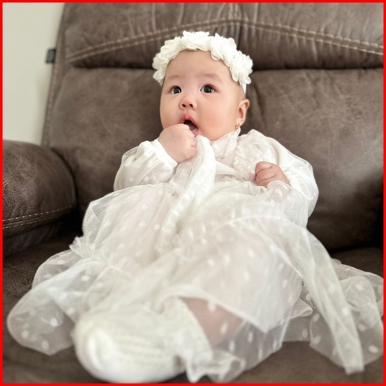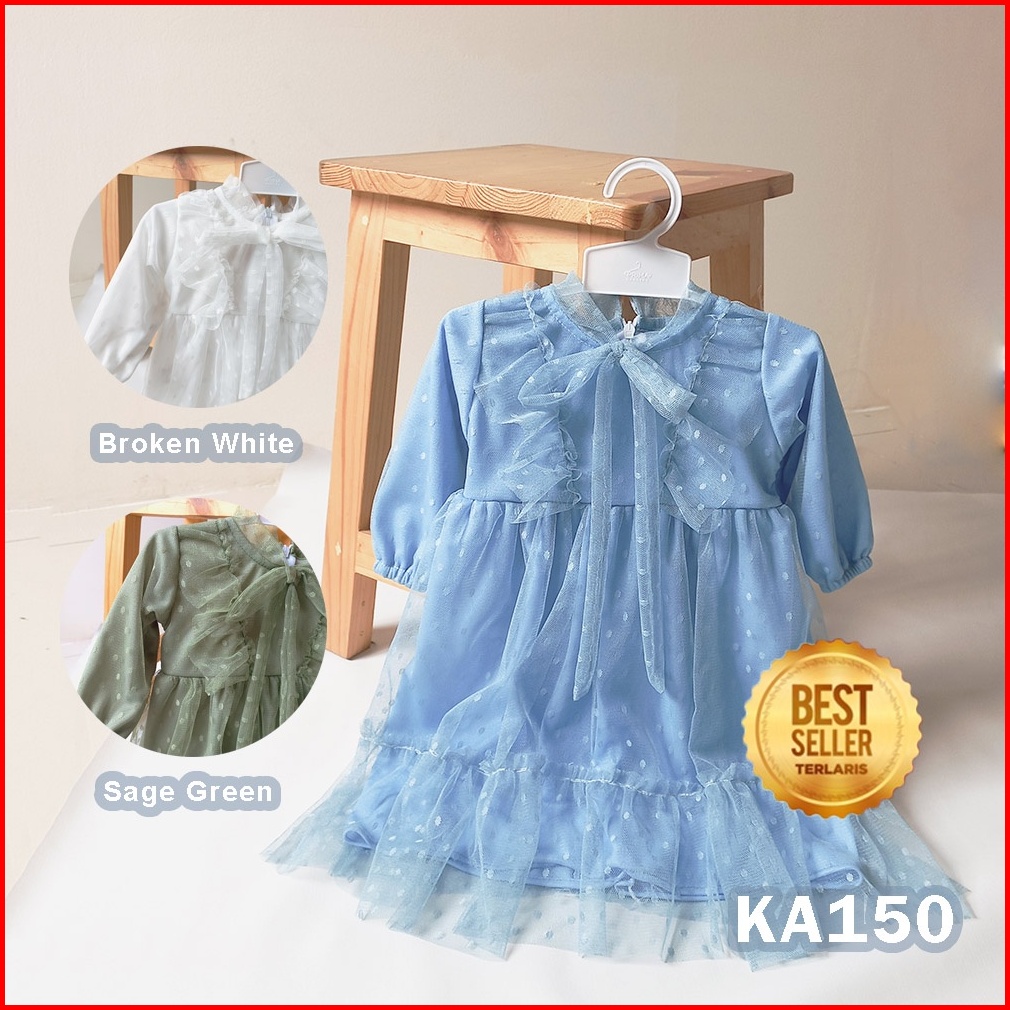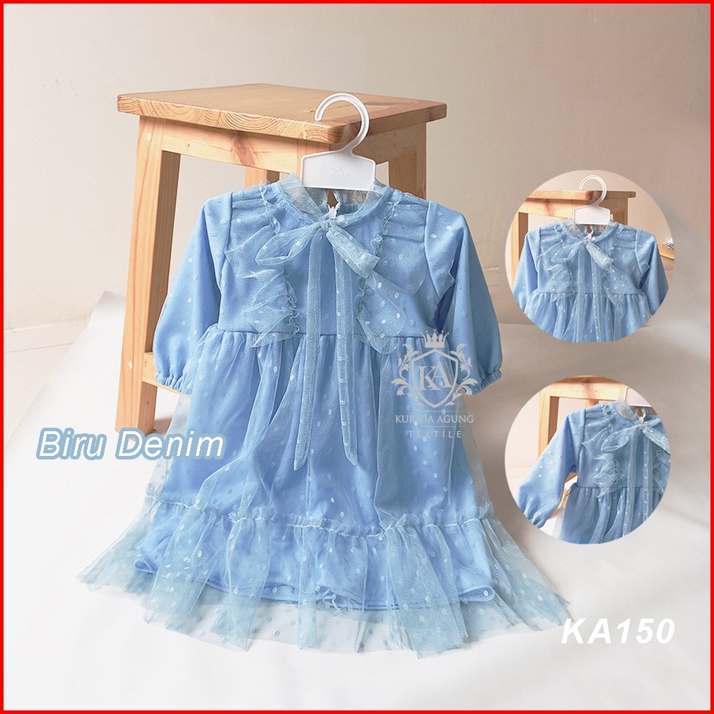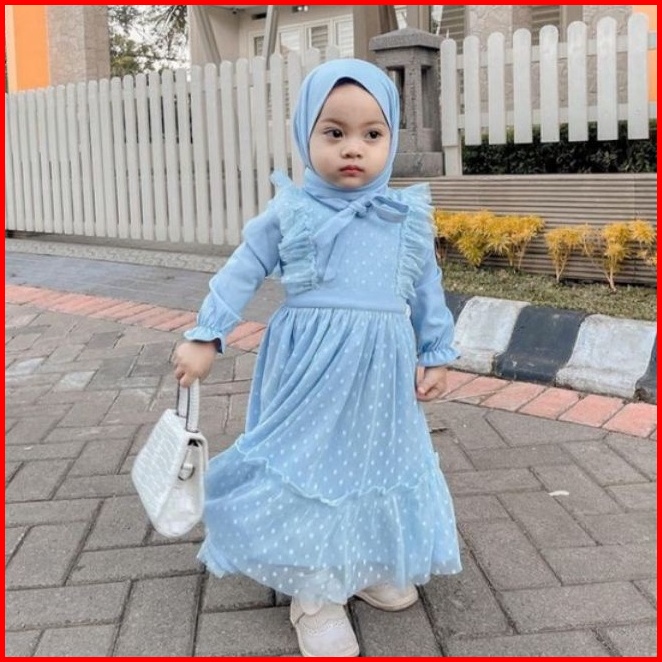 Biru Denim Dress Anak 1 Tahun Model Terbaru 2023 Gaun Motif Polkadot Bayi 6 12 Bulan Warna Biru Muda Soft Blue Kondangan