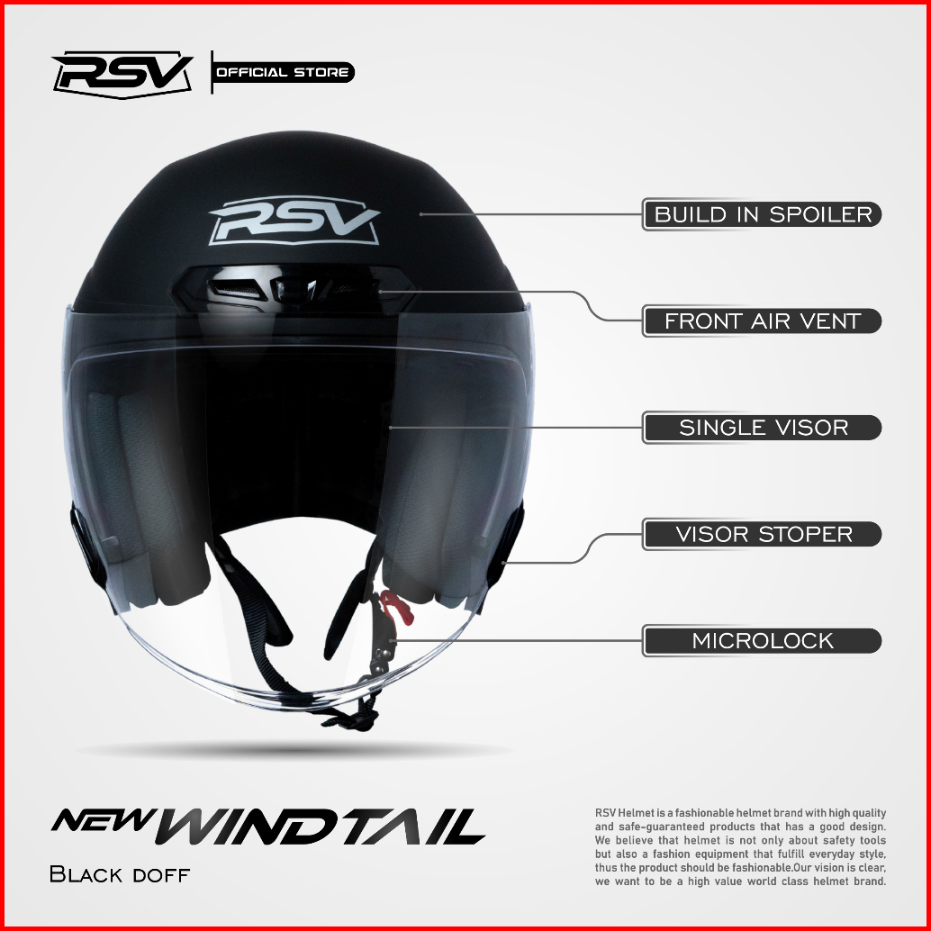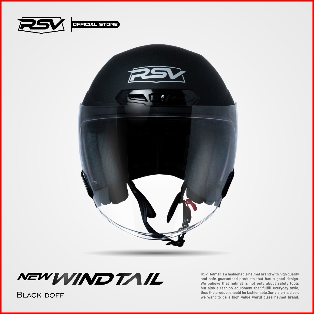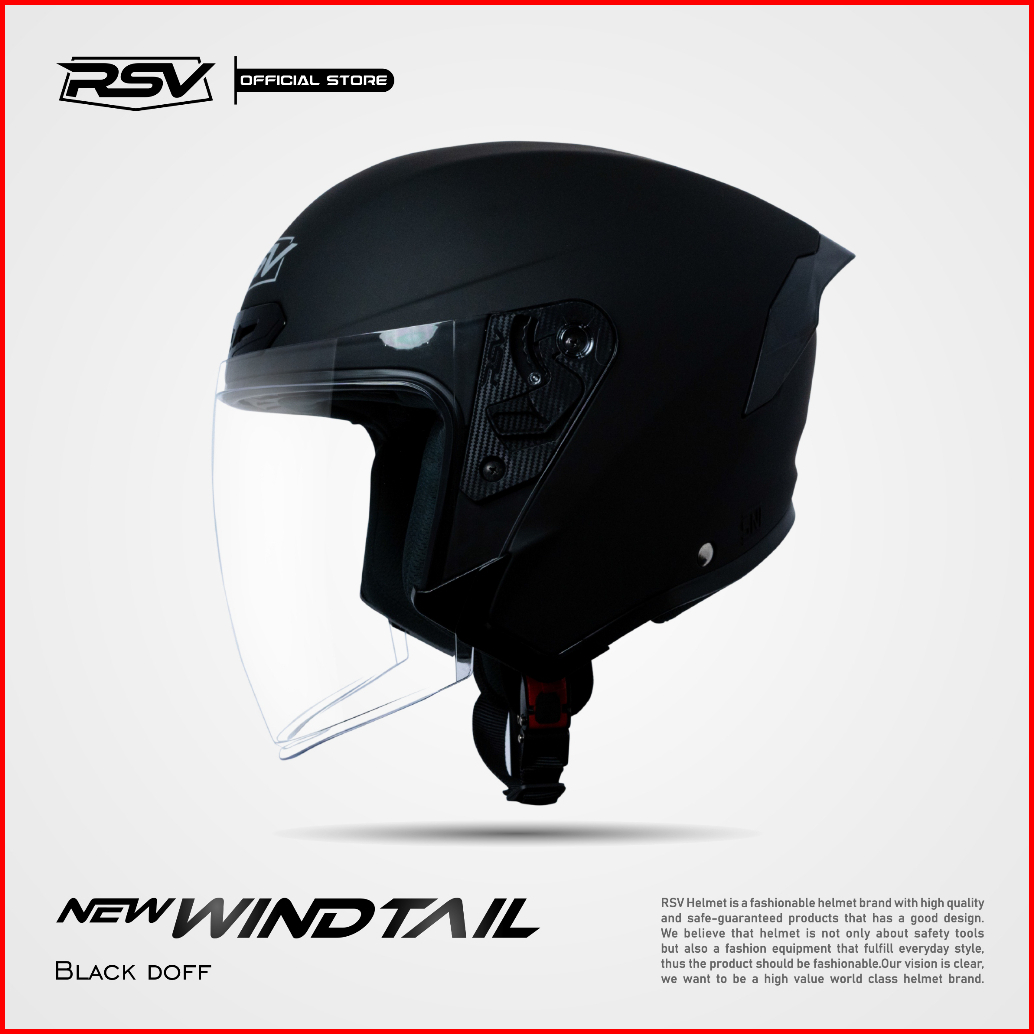 Helm Motor Half Face Rsv Original Rsv New Windtail Black Doff Single Visor Sni Dot Ece R22.05 Helm