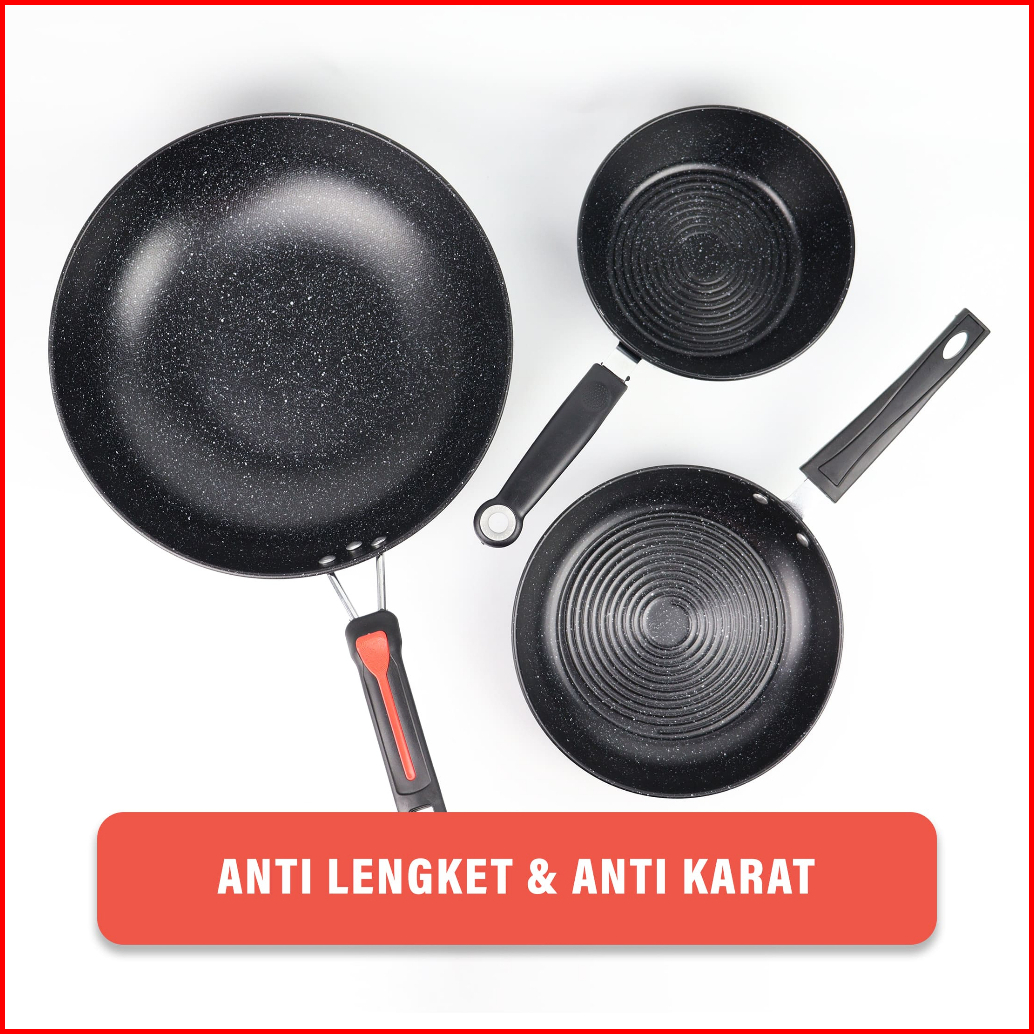 Panci Wajan Penggorengan Set 3pcs Wajan Penggorengan Anti Lengket