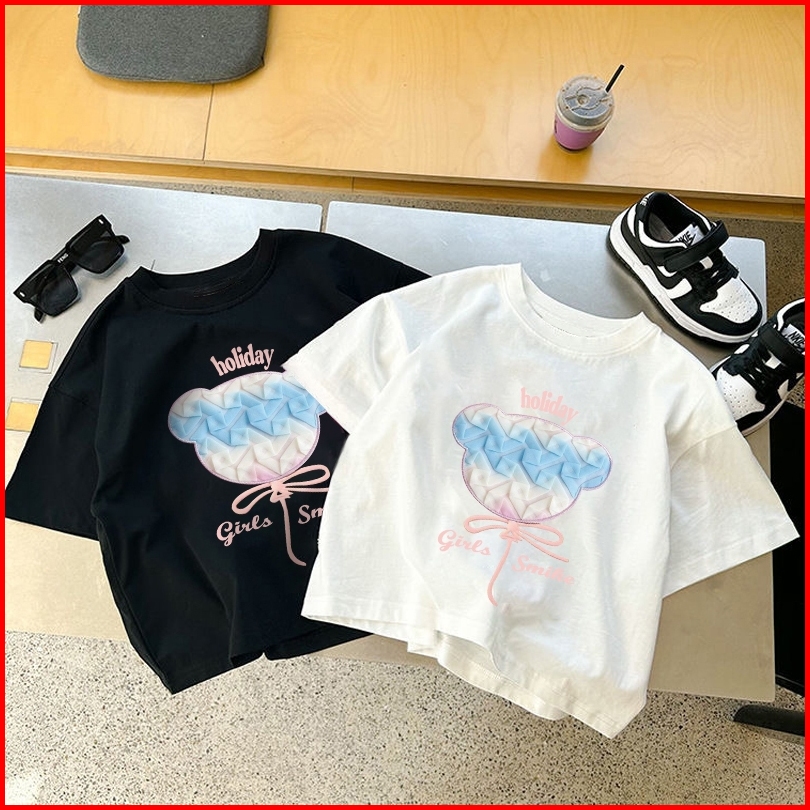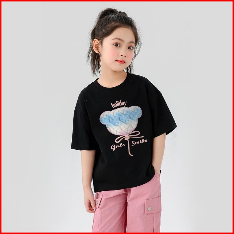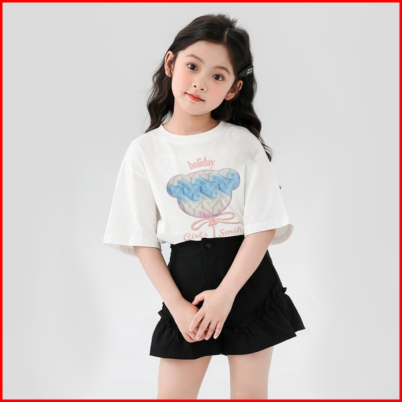 Dailyway Korean Style Kaos Atasan Putih Anak Perempuan Baju Bear Holiday Anak Perempuan Baju Anak Cewek Import Umur 1 12