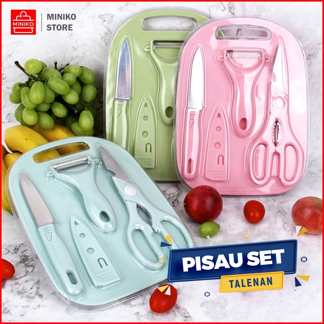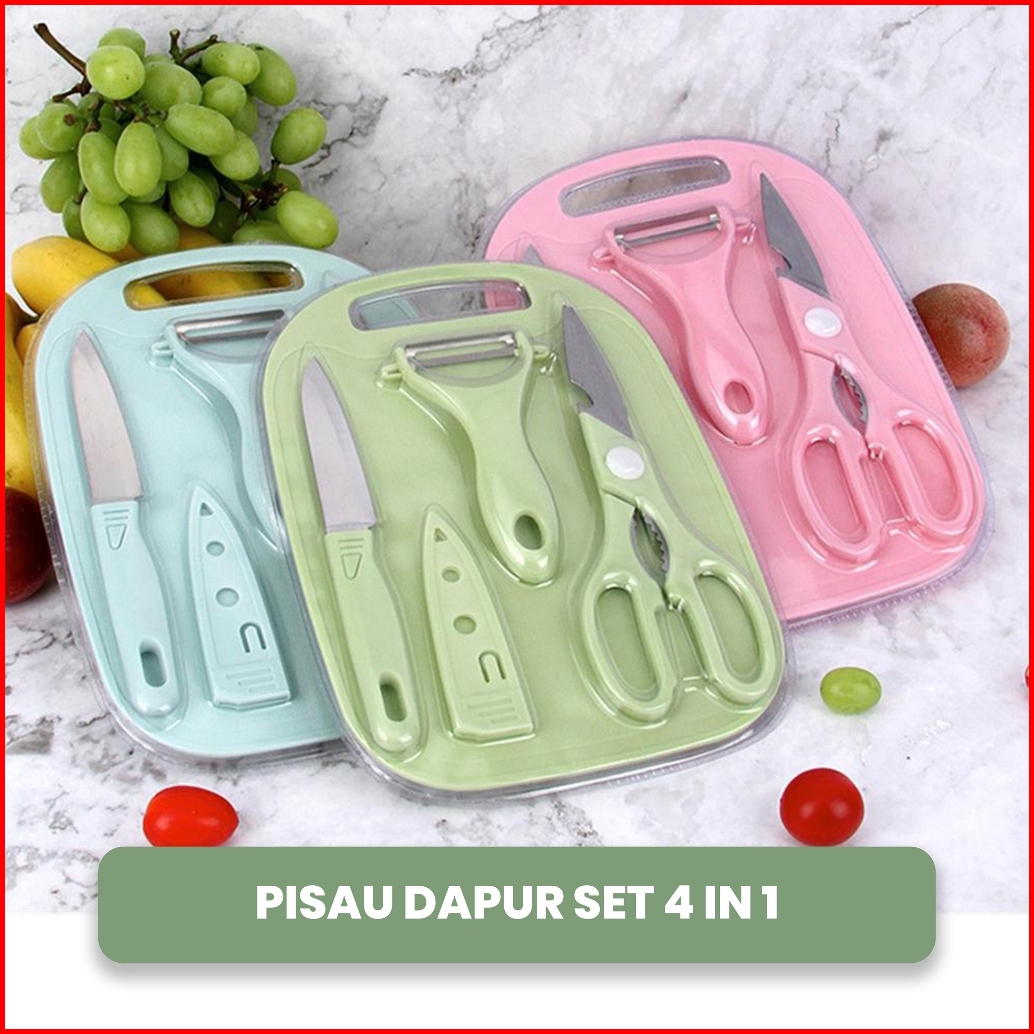 Pisau Set Dapur 4 In 1 Pisau Set Talenan Gunting 4 In 1
