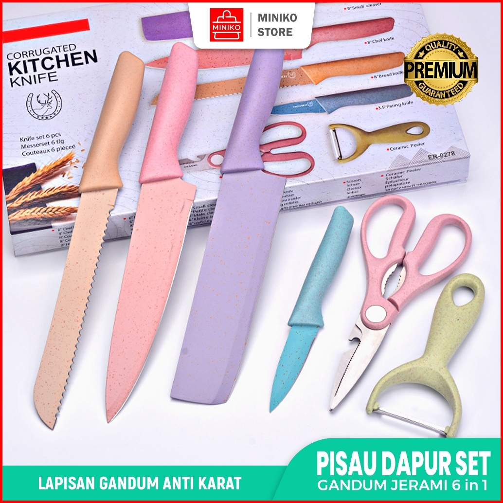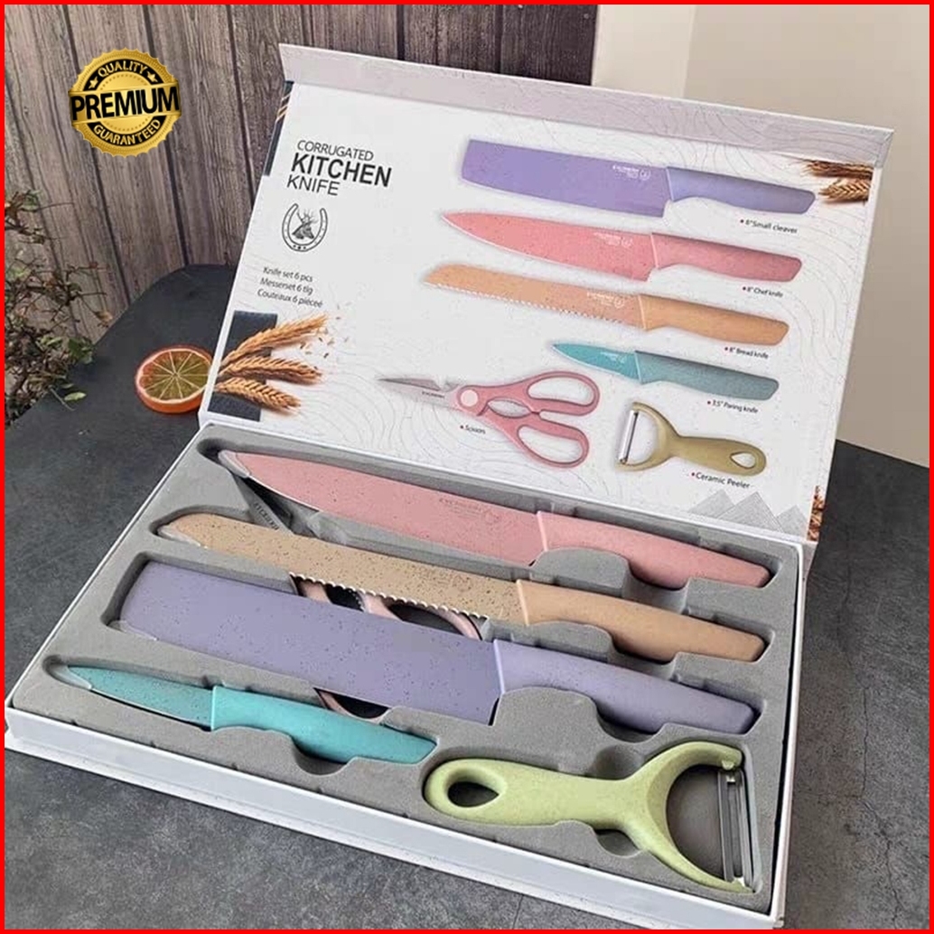 Pisau Set 6in1 Warna Warni Kode 600 - Corrugated Kitchen Knife Kitchenware