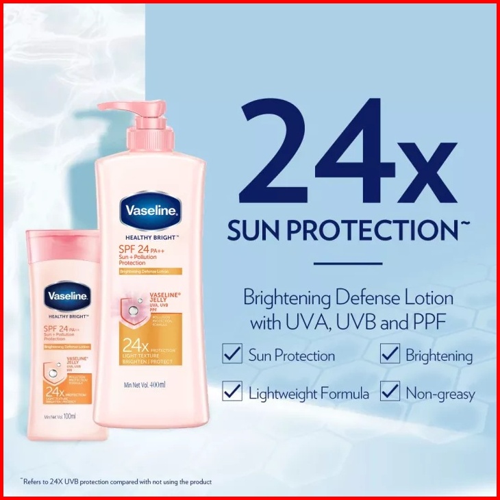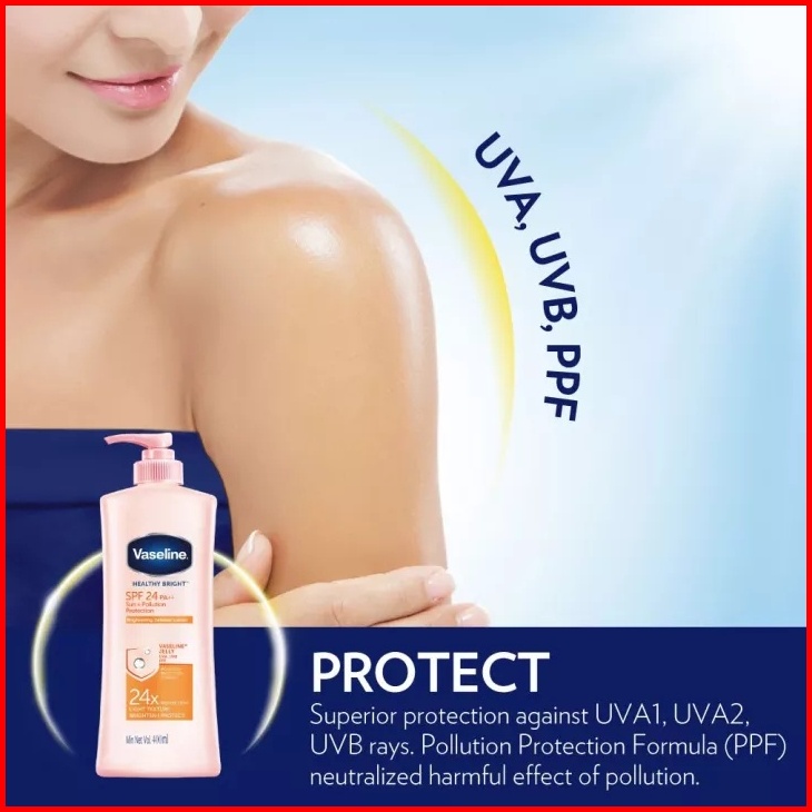 Vaseline Healthy Bright Hand Body Lotion Spf 24 Pa Sun Pollution Protection - Healthy White Lotion Kulit Kusam 400ml