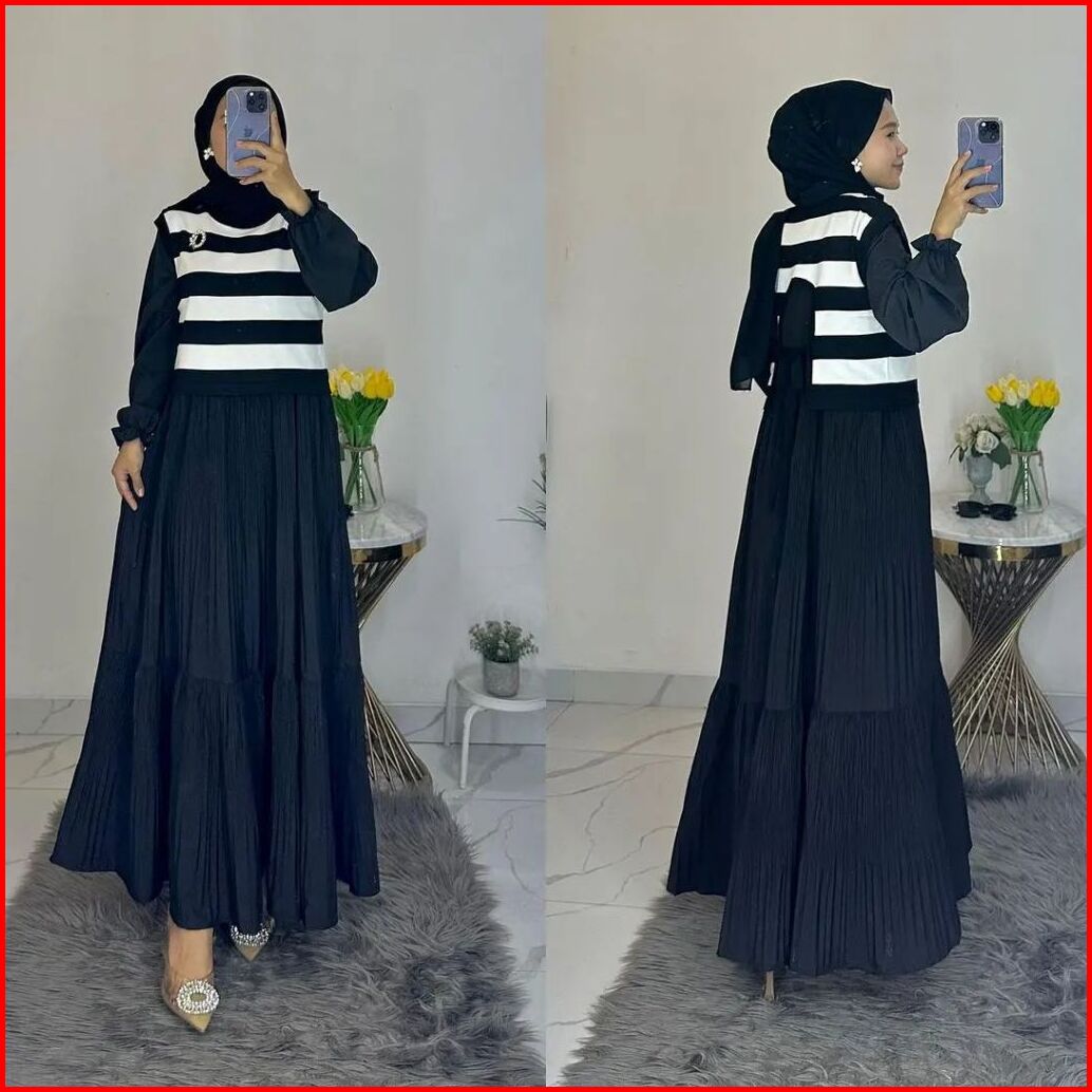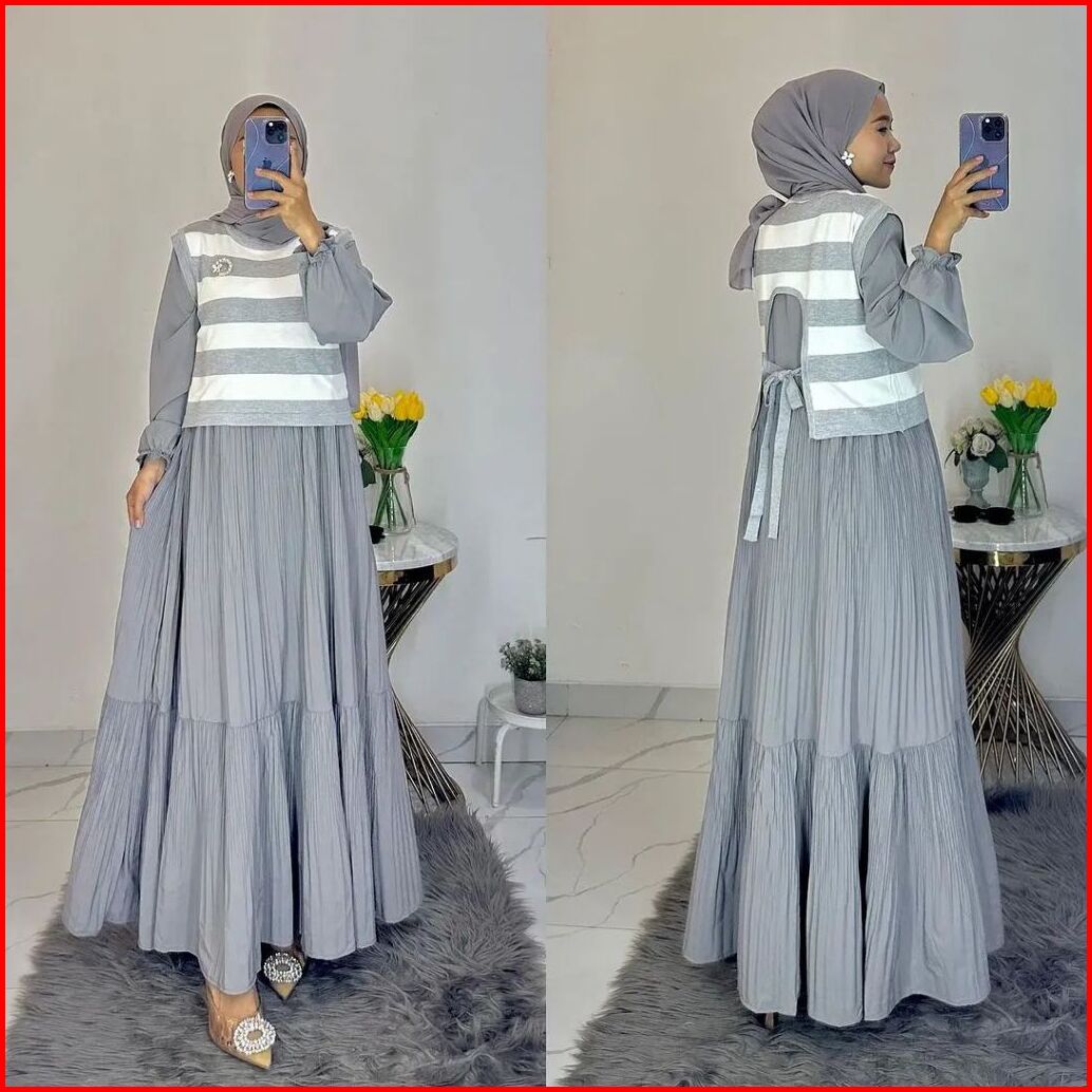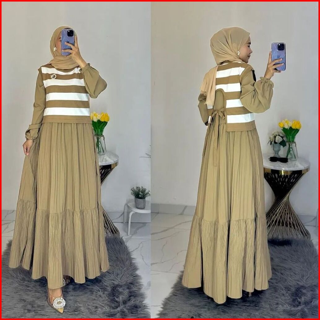 Kevia Maxy Dress Bahan Crinkle Combed Gamis Lebaran 2024 Model Gamis Terbaru Dress Korean Style Elf