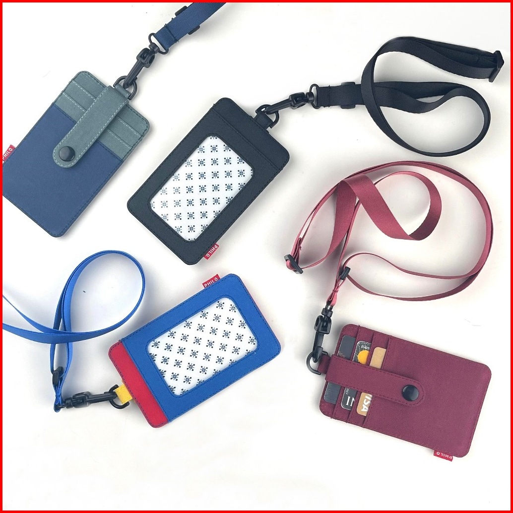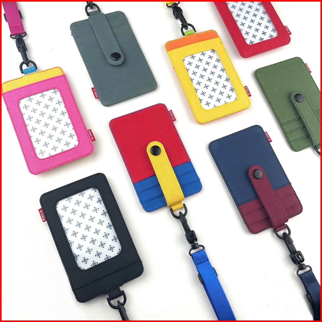 Id Card Holder Dompet Gantung Name Tag Kartu Lanyard Kain Polos Philo