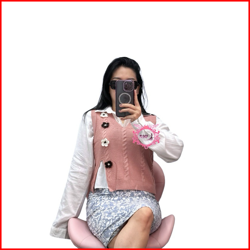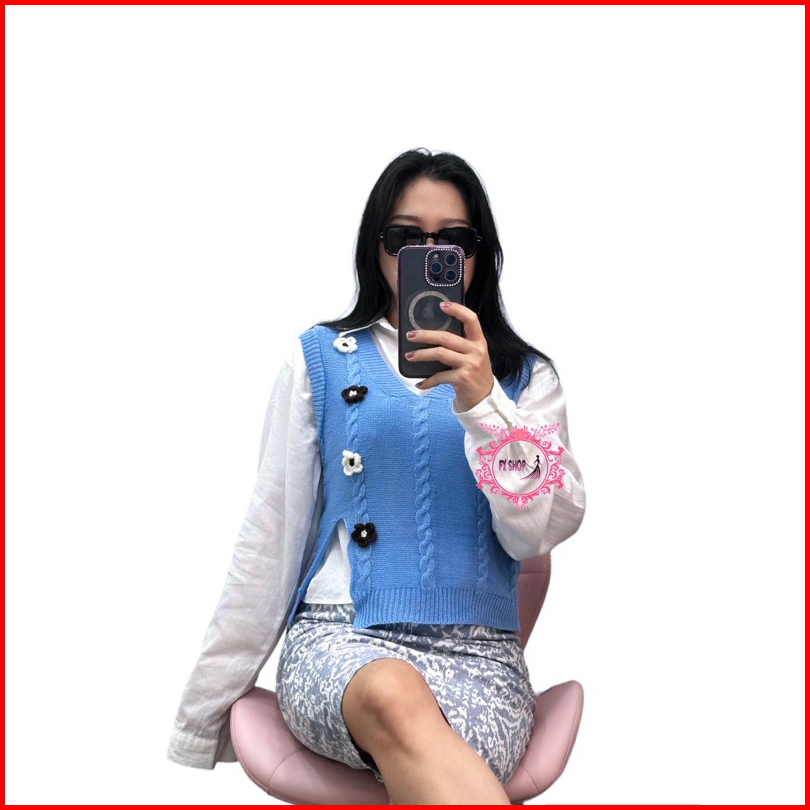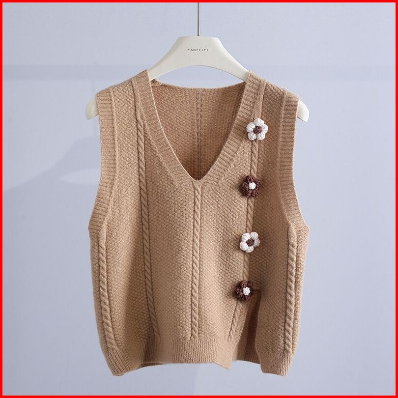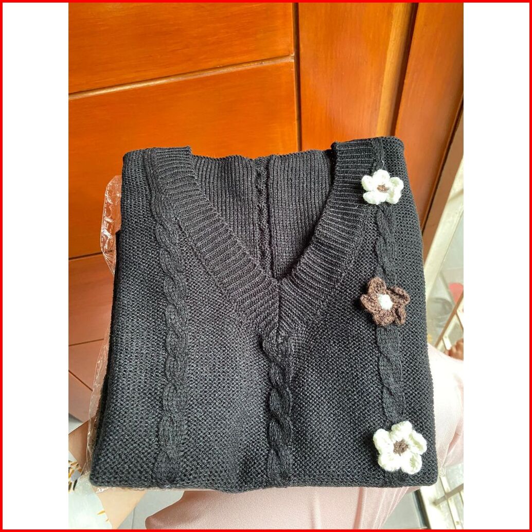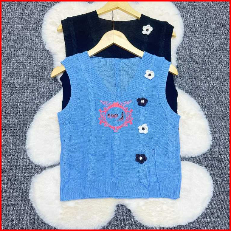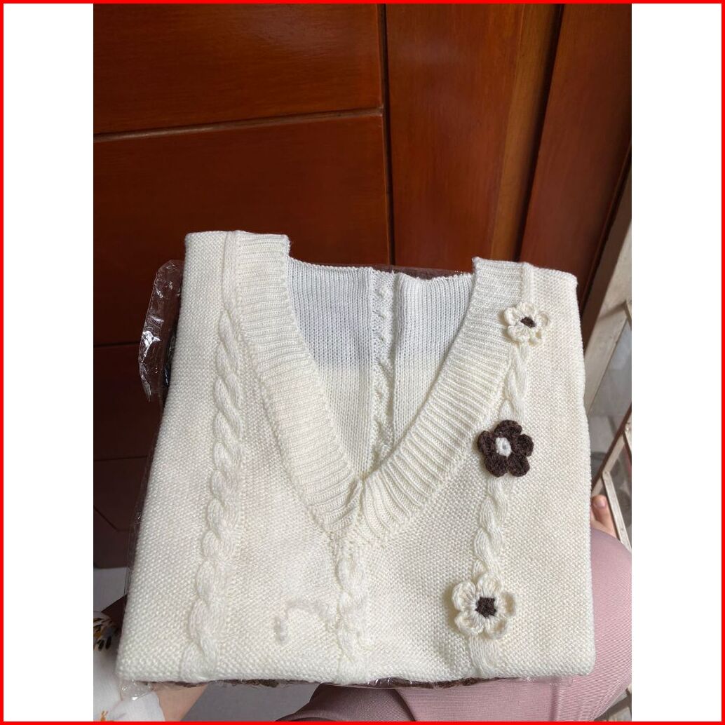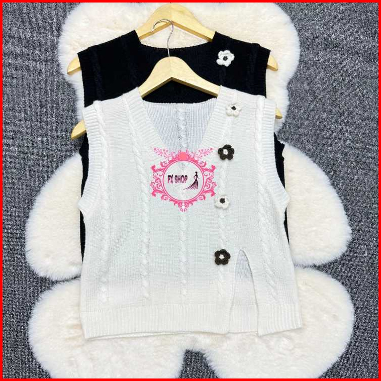 Fx Shop Vest Flow V-neck Knitted Atasan Wanita Rompi Korean