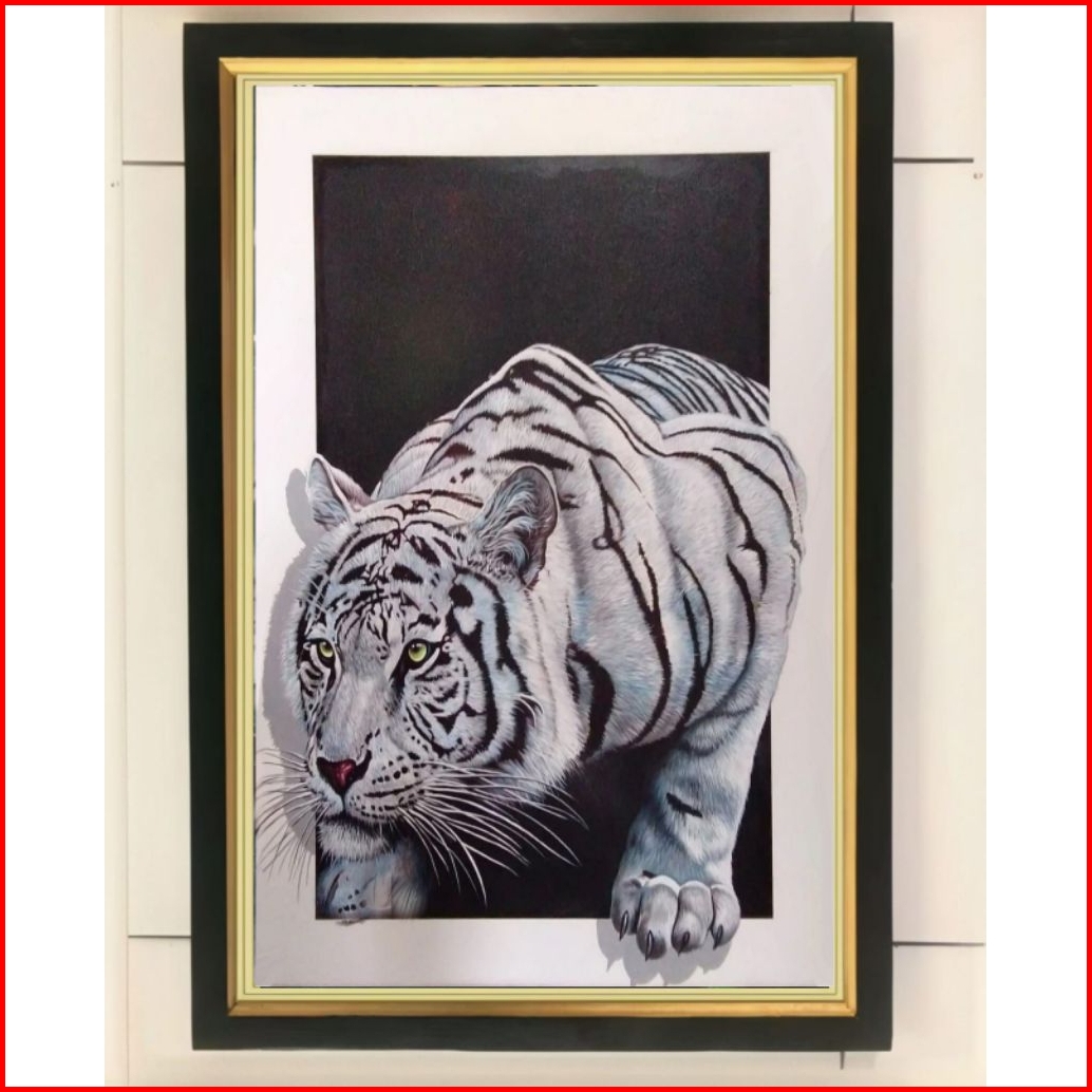 Hiasan Dinding Lukisan Cetak Harimau Putih 3d Plus Bingkai Ukuran 65 45