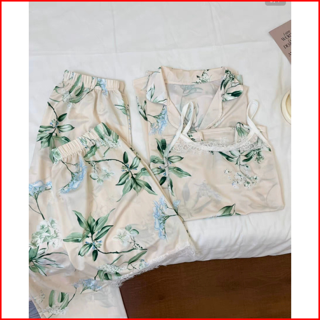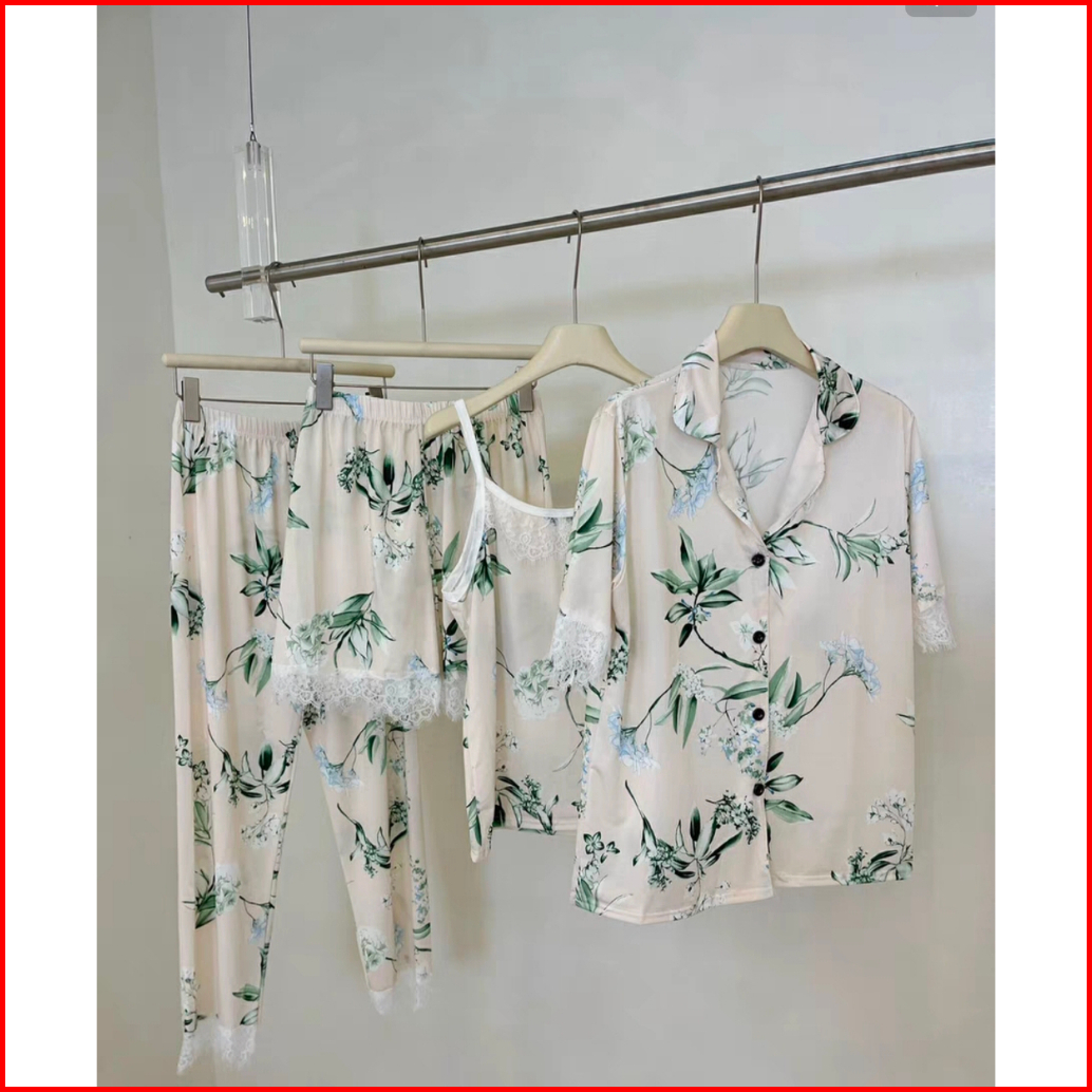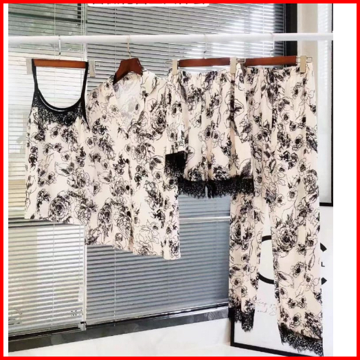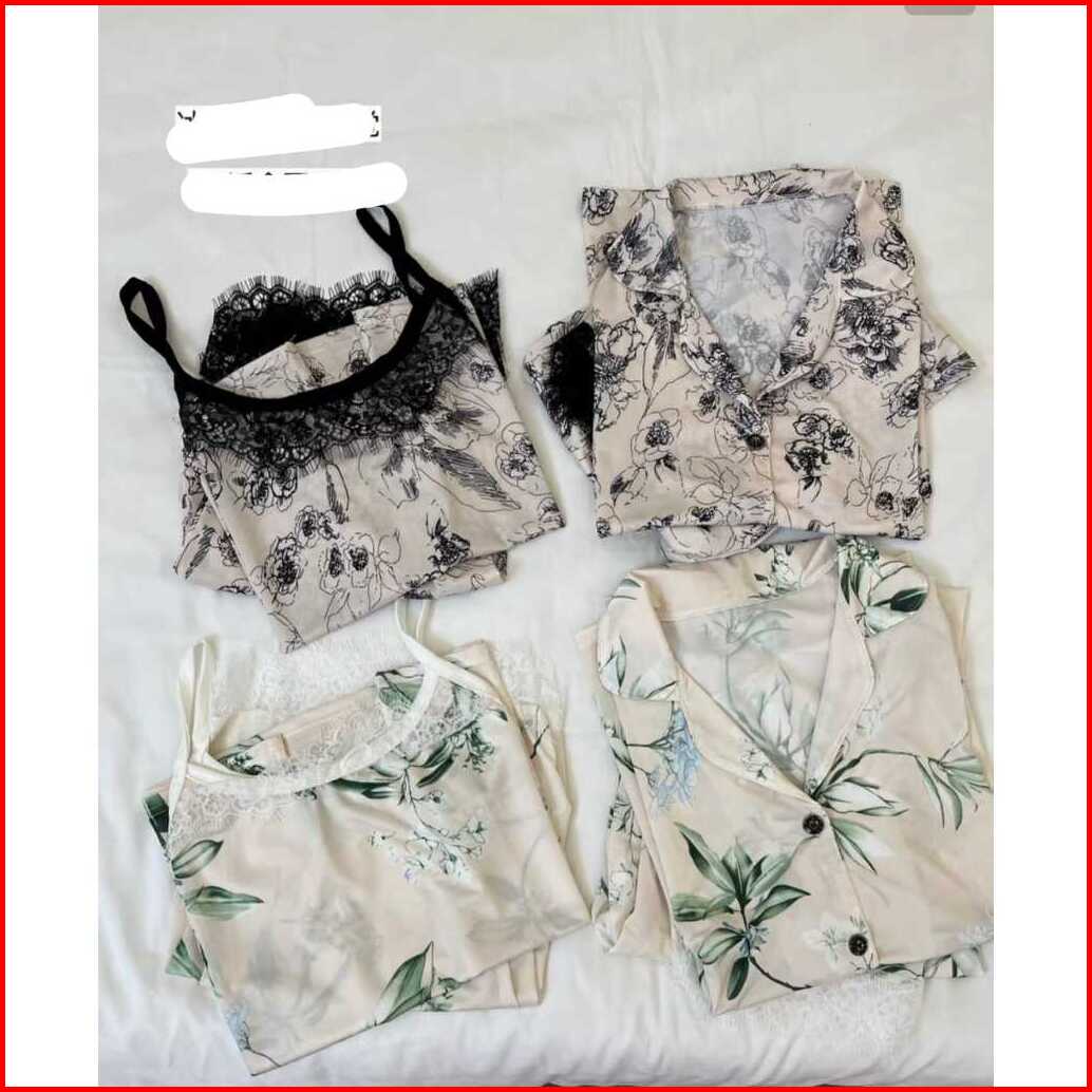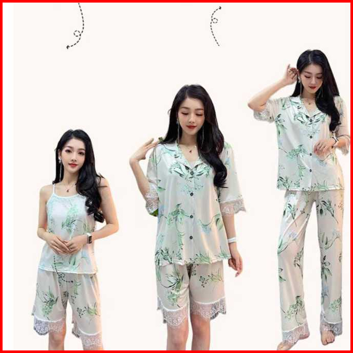 Piyama Wanita Dewasa 4 In 2 Lengan Pendek Kancing