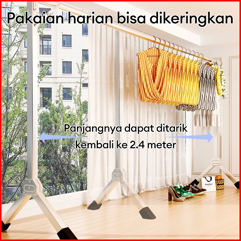 Sus304 Jemuran Baju Stainless Steel Single Jemuran Pakaian Lipat Jemuran Portable 240cmtidak Diperlukan Instalas
