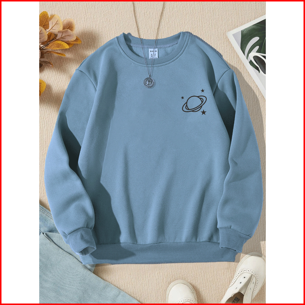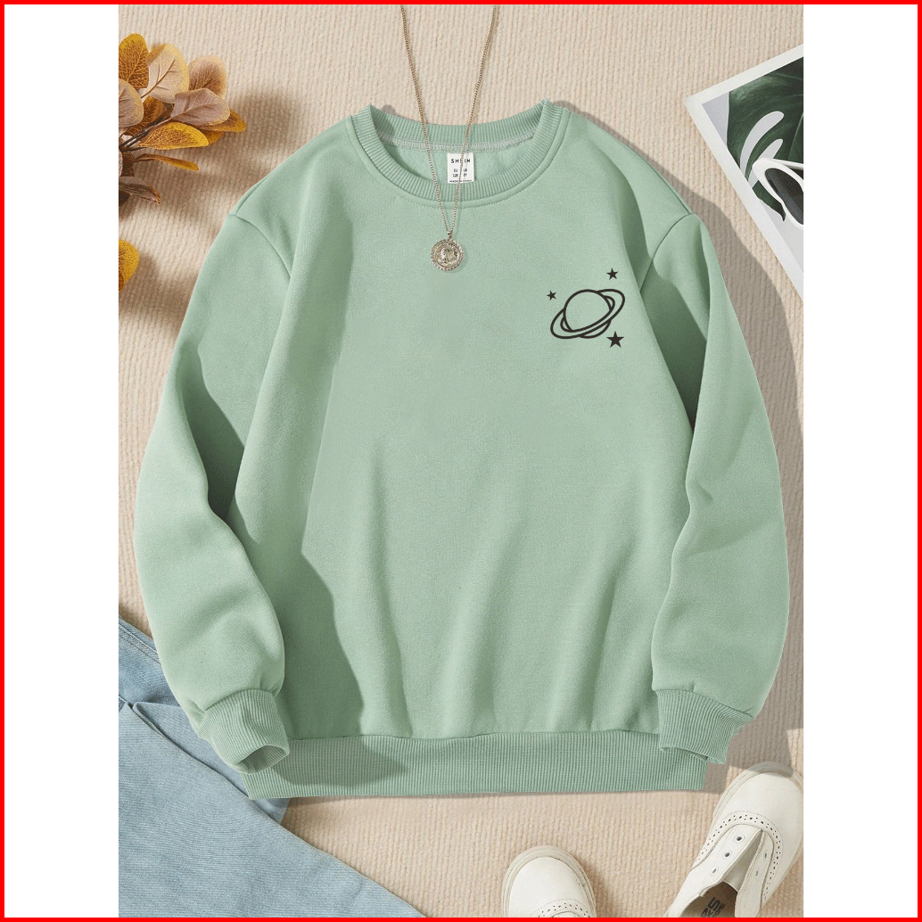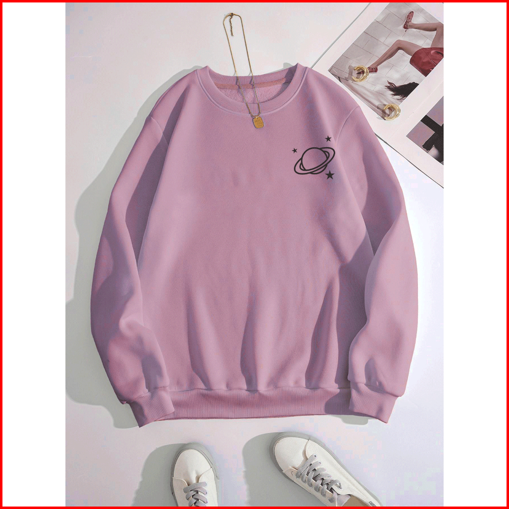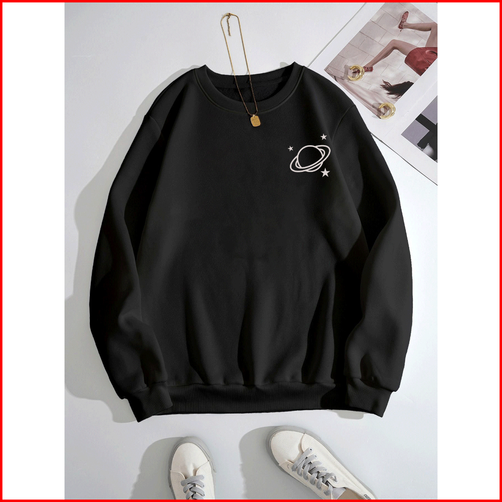 Sweater Wanita Planet Crewneck Remaja Dewasa Sweater Basic Oblong Cewe Flecce Murah
