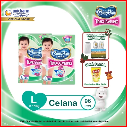 Mamypoko Pants X-tra Kering Slim Tidak Gembung - L 48 - Popok Celana - 2 Packs