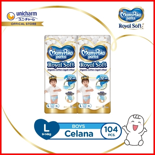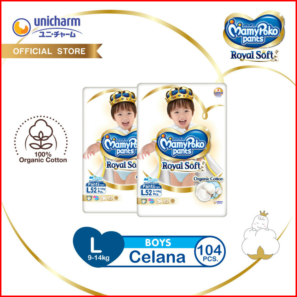 Mamypoko Pants Royal Soft Organic Cotton - L 52 - Boys - Popok Celana - 2 Packs