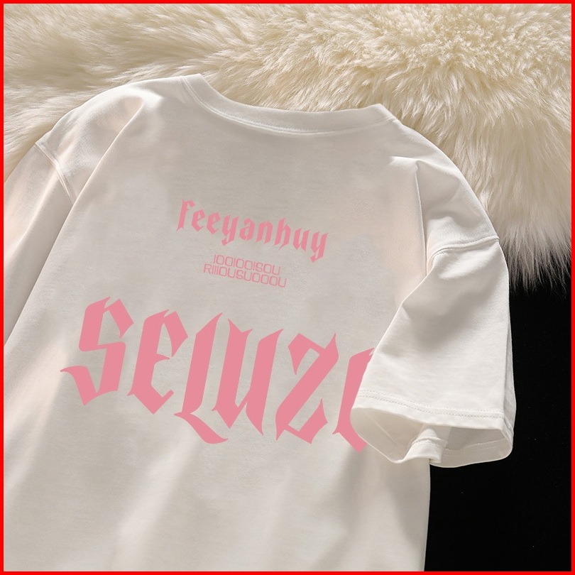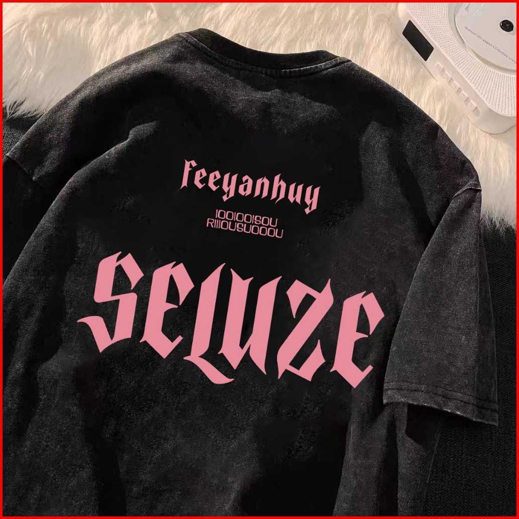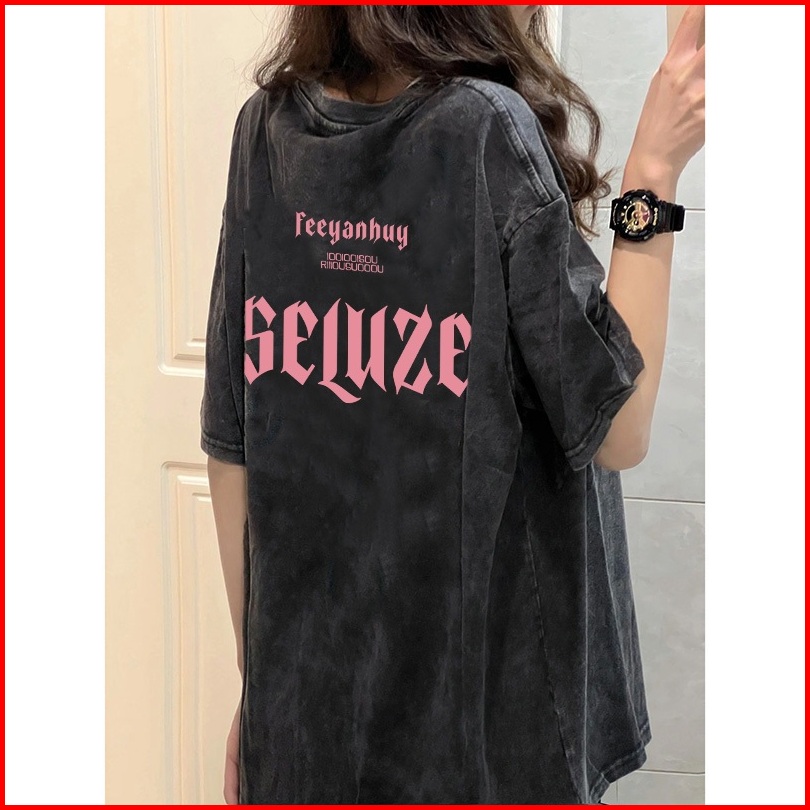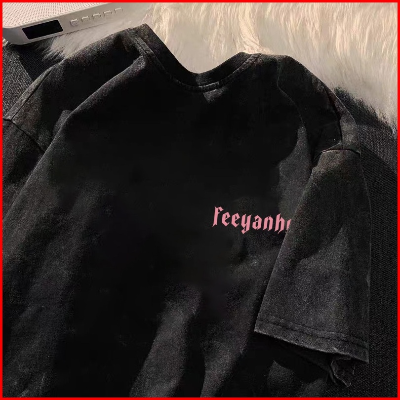 Po Floret Washed T Shirt Oversize Lengan Baju Pendek Kaos Street Hip Hop Katun Murni Wanita Top Hitam