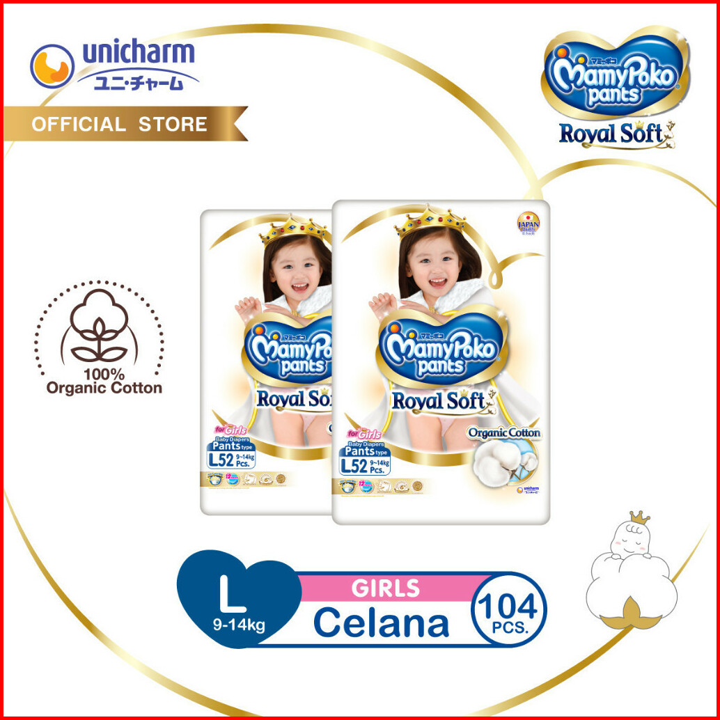 Mamypoko Pants Royal Soft Organic Cotton - L 52 - Girls - Popok Celana - 2 Packs