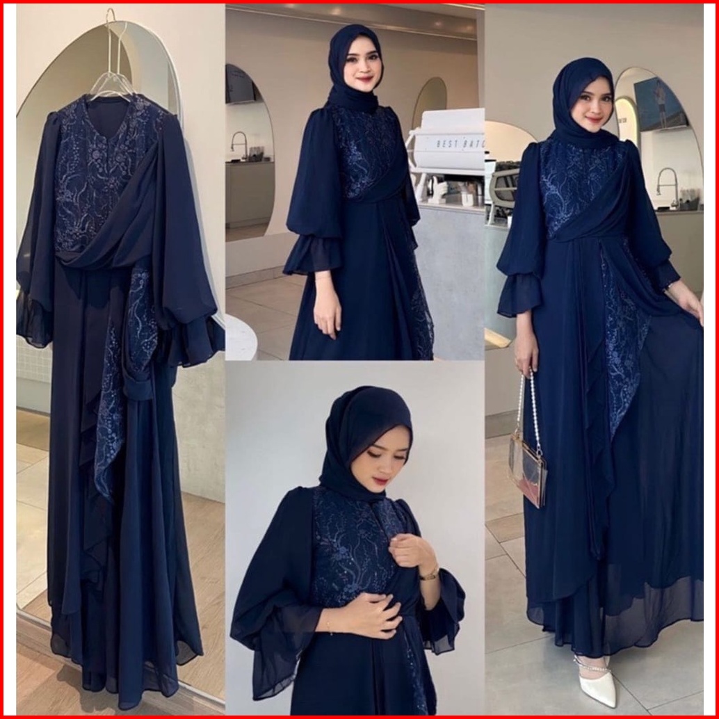 - Melisa Dress Maxy Matt Ceruty Babydoll Full Puring All Size Fit To Xl Besar Ootd Gamis Muslim Wanita Kondangan